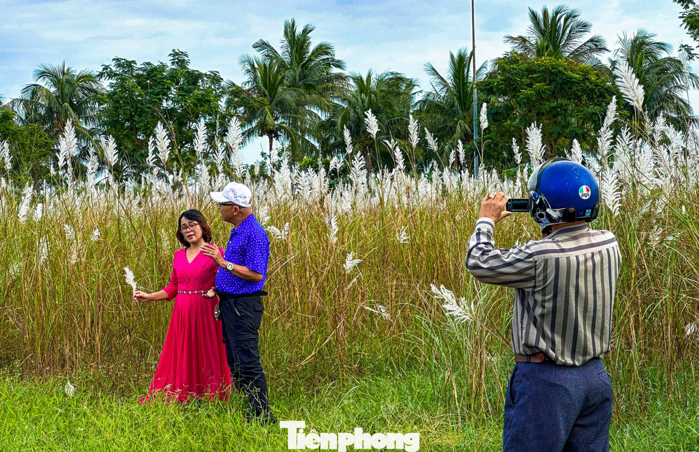 Nhiều bạn trẻ tìm đến cánh đồng cỏ lau để chụp ảnh, lưu lại khoảnh khắc.