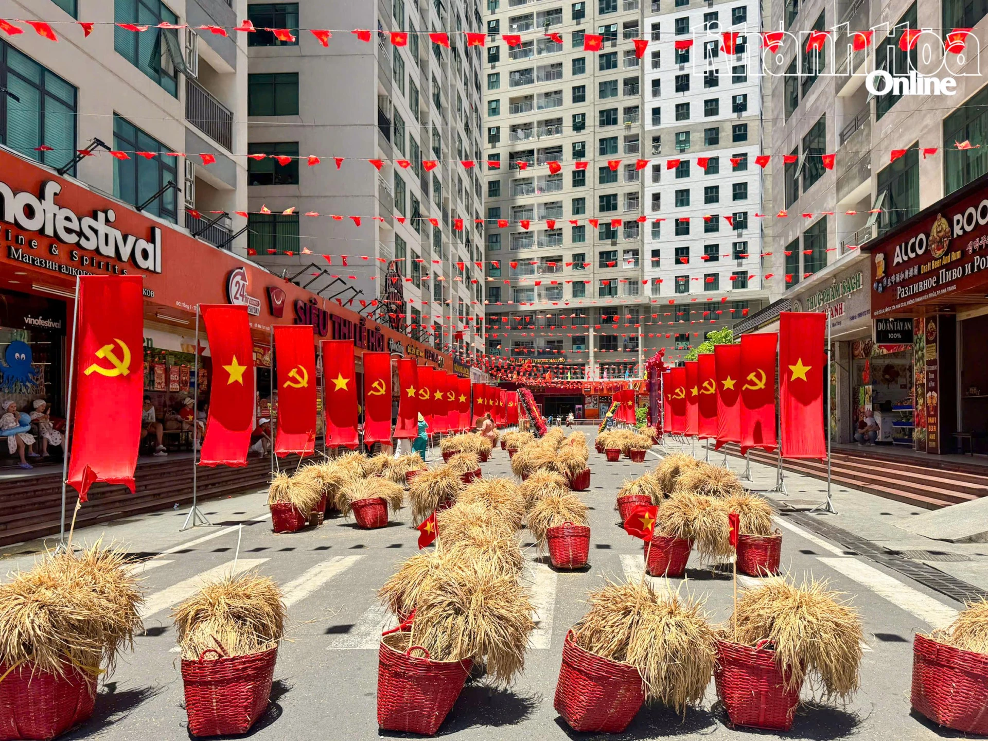 Góc phố rực rỡ sắc cờ đỏ.
