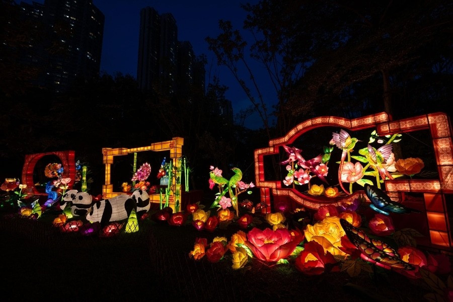 Hong Kong vẫn gìn giữ Trung thu theo phong cách cổ điển. Victoria Park và Tsing Yi Park biến thành những xứ sở đèn lồng, nơi hàng ngàn chiếc đèn rực sáng từ hoàng hôn. Chợ đêm, trò chơi dân gian và biểu diễn nghệ thuật khiến đêm rằm trở nên sống động. Ảnh Mạc Luyện