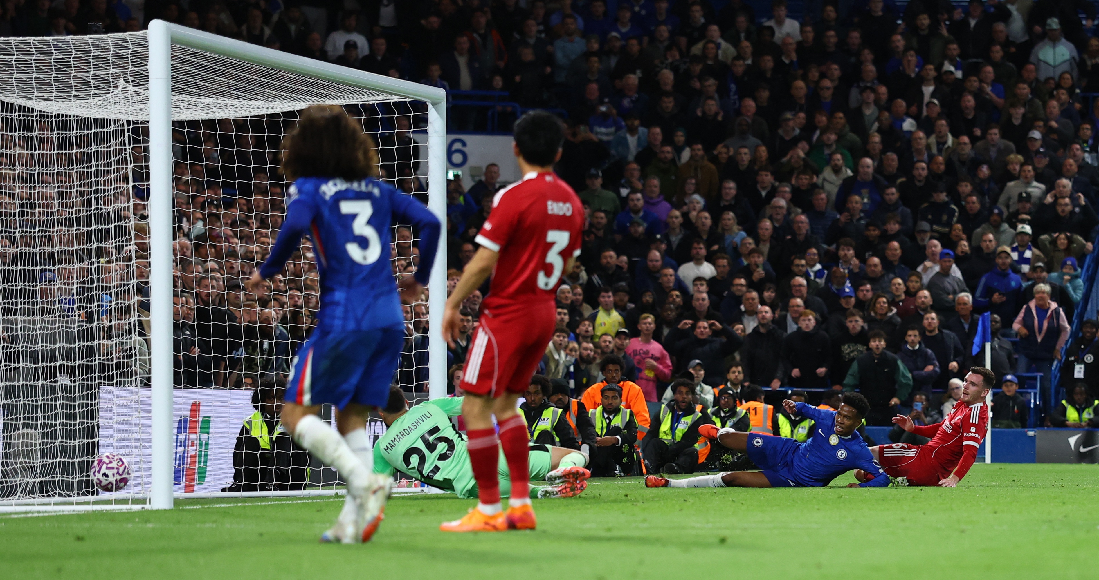 Phút 90+6, khi CĐV đã nghĩ về trận hòa, Chelsea vẫn kịp tổ chức một pha tấn công bên cánh trái. Enzo Fernandez chọc khe để Marc Cucurella thoát xuống, trước khi căng ngang vừa tầm để Estevao dứt điểm cận thành, ấn định thắng lợi 2-1 đầy cảm xúc cho đội bóng thủ đô.