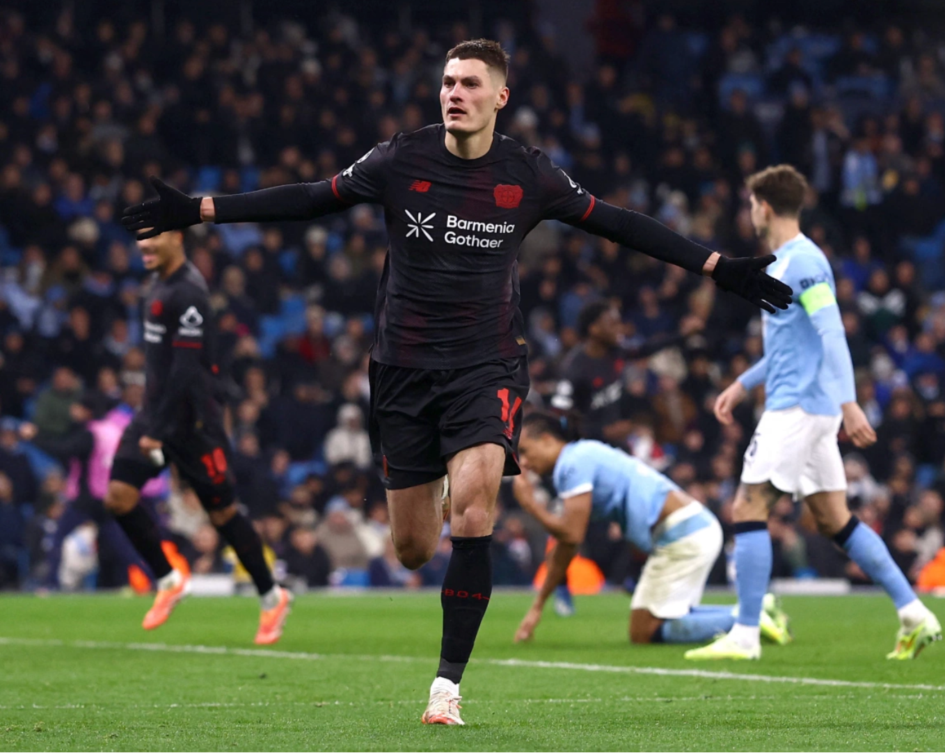 Phút 22, hàng hậu vệ dày đặc người của Man City đã để Alex Grimaldo thoải mái băng vào dứt điểm chéo góc đưa Leverkusen vươn lên dẫn bàn. Chưa dừng lại ở đó, tới phút 54, từ quả tạt bên cánh trái, Patrik Schick bật cao đánh đầu chéo góc, đưa bóng ngoài tầm với của Trafford, nâng tỷ số lên 2-0.