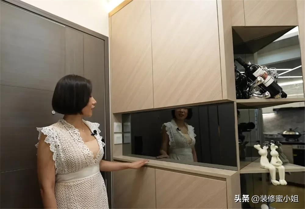 Ngay lối vào, tủ bếp thiết kế theo dạng góc vát, giúp không gian bớt ngột ngạt. Ảnh: Sohu