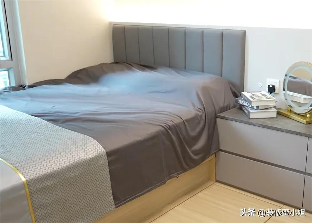Phòng ngủ chính được nâng sàn thành giường bục lưu trữ khổng lồ. Bên dưới là không gian để đồ theo mùa. Ảnh: Sohu