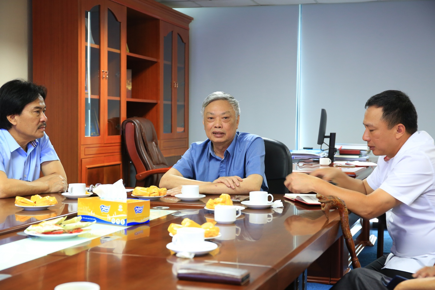 Đồng chí Nguyễn Quốc Thập - Chủ tịch VPA và đồng chí Nguyễn Tiến Dũng - Bí thư Chi bộ Cơ quan VPA trao quyết định và huy hiệu 45 năm tuổi Đảng cho đồng chí Trần Ngọc Cảnh - nguyên Tổng Giám đốc Petrovietnam, nguyên Phó Chủ tịch VPA