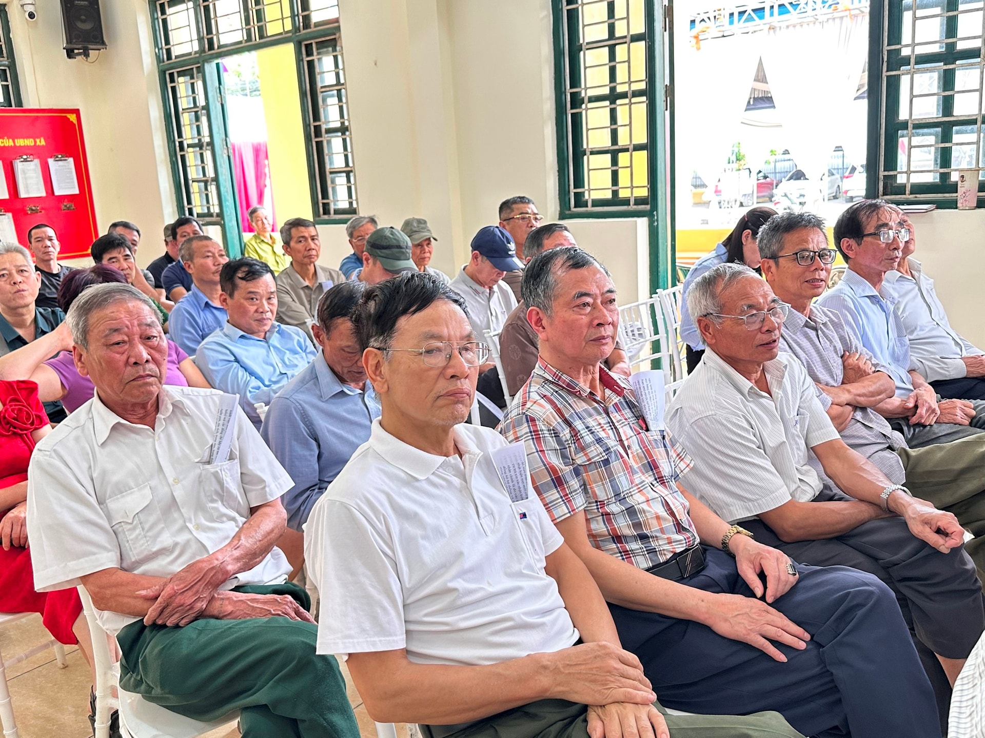 Lãnh đạo xã Đại Thanh giao lưu với các đảng viên Chi bộ thôn Huỳnh Cung. Ảnh: Mai Duyên
