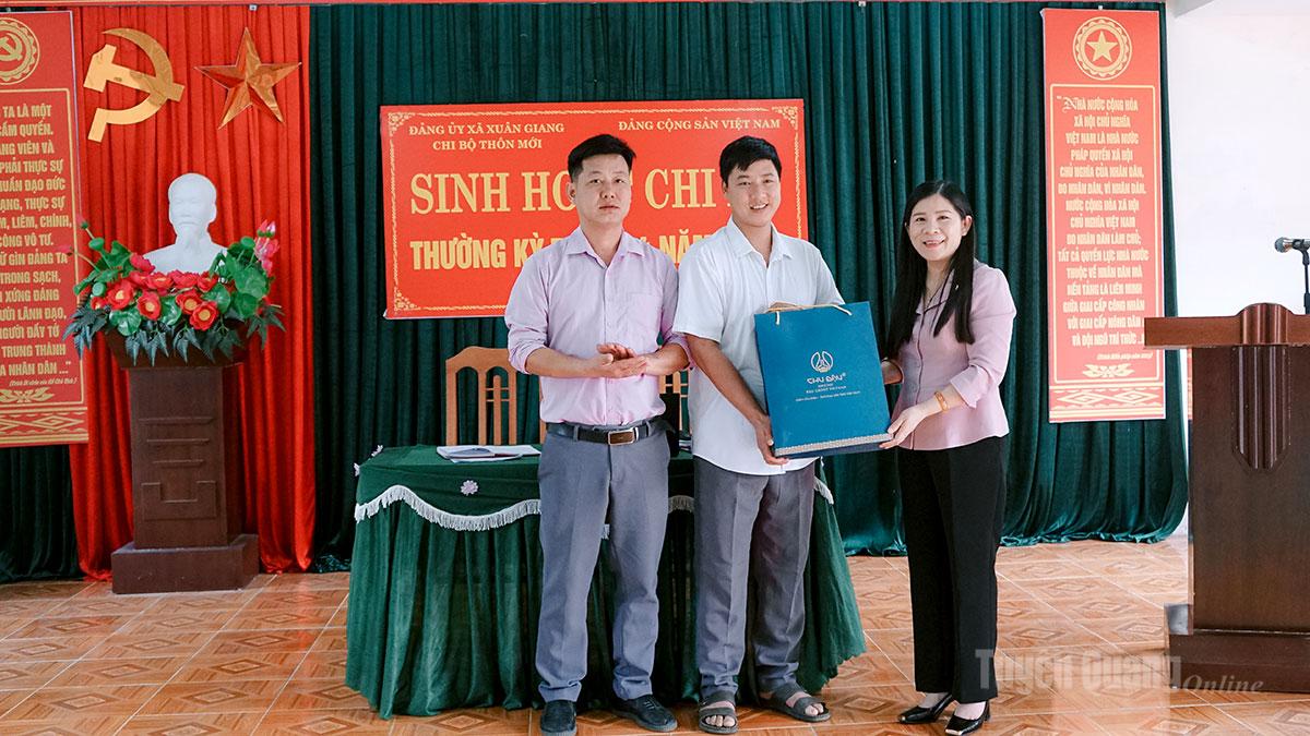 Phó Chủ tịch HĐND tỉnh Lê Thị Thanh Trà tặng quà động viên Chi bộ thôn Mới, trực thuộc Đảng bộ xã Xuân Giang nỗ lực phấn đấu hoàn thành mọi nhiệm vụ được giao.