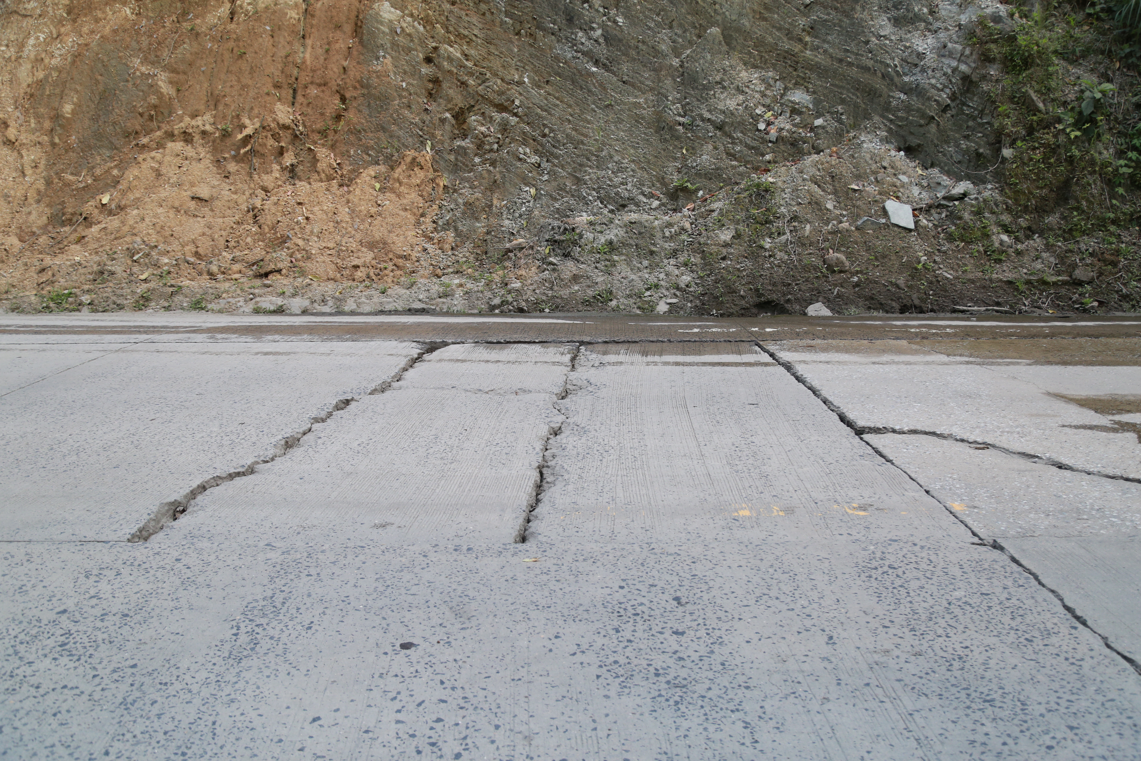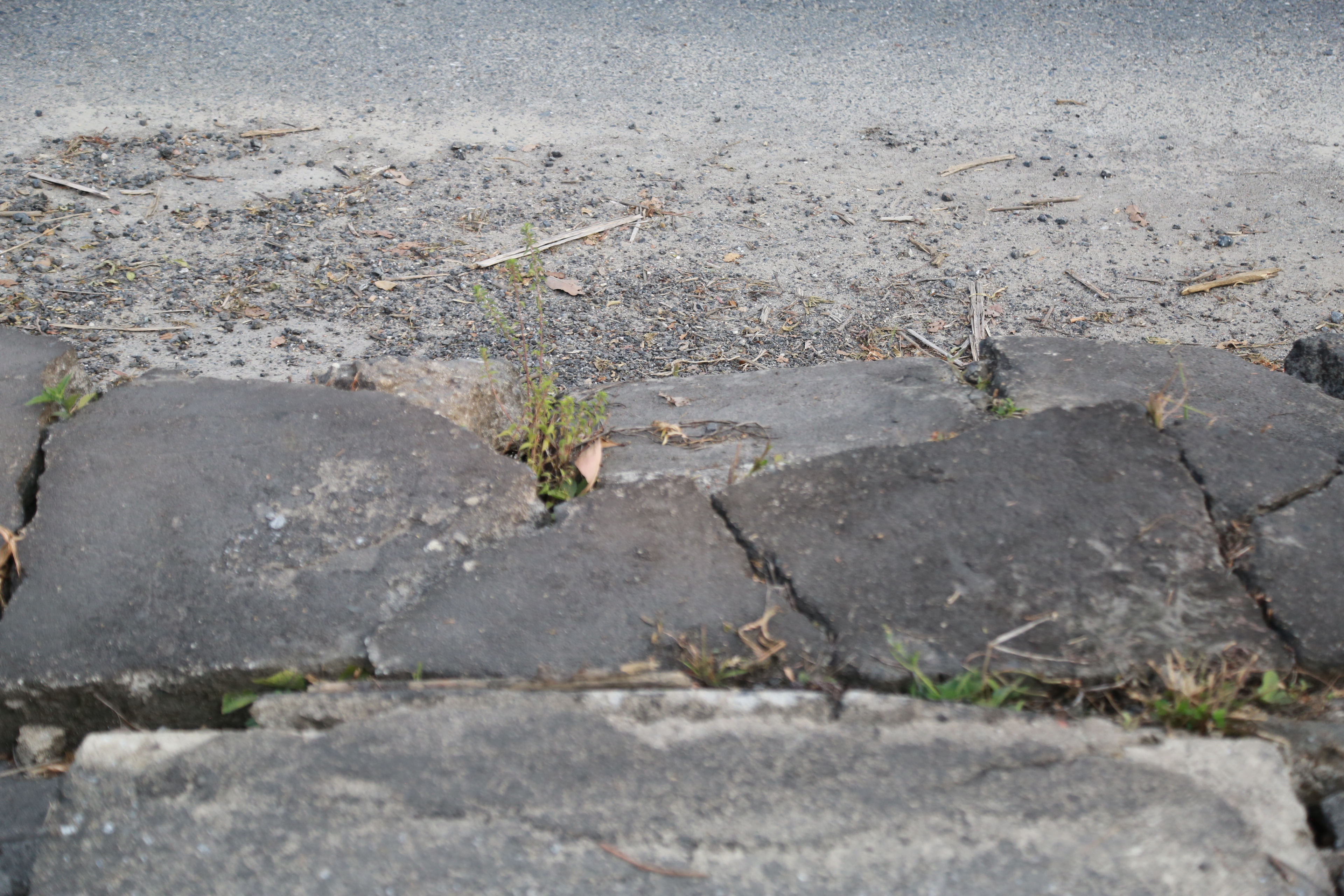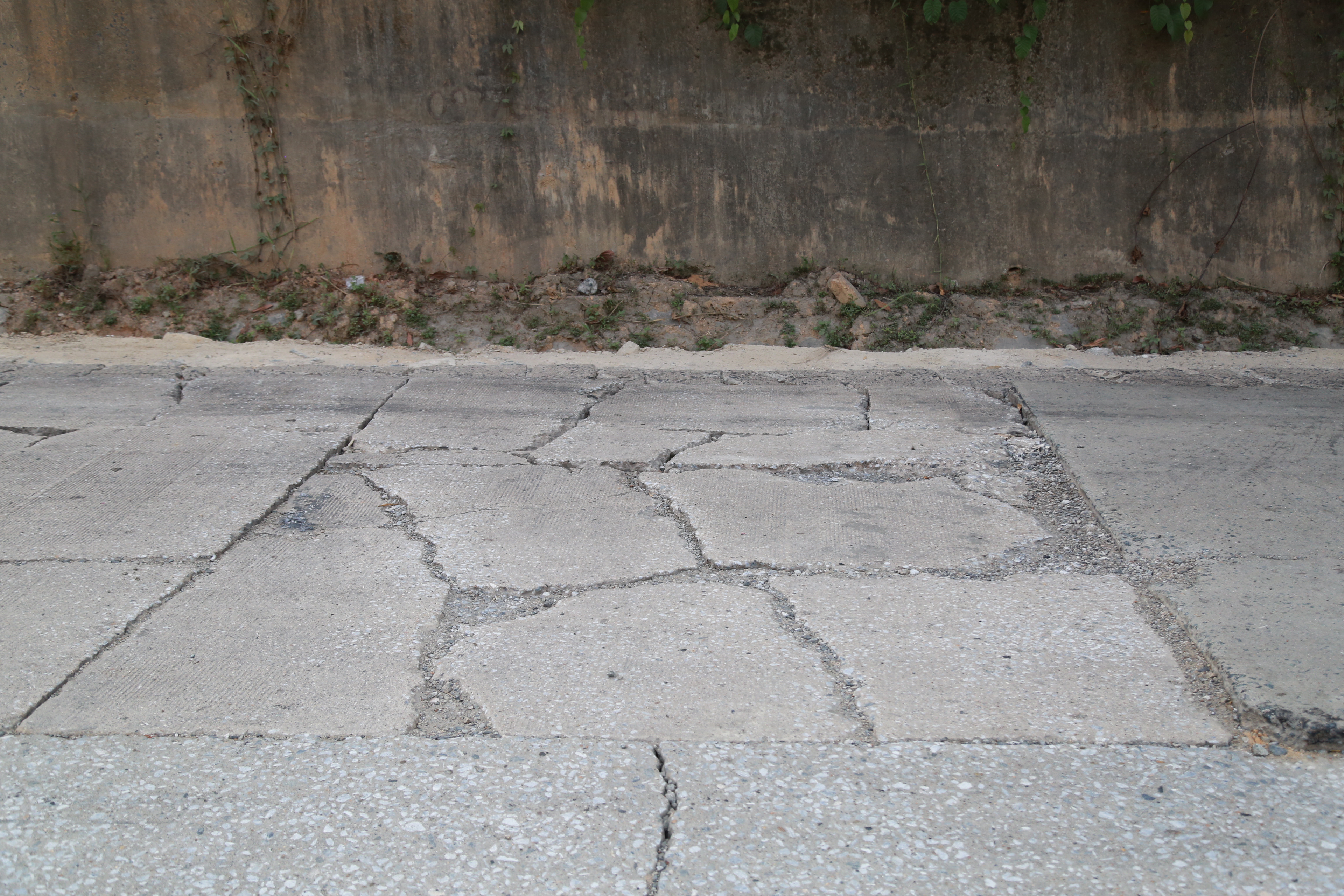 Tại nhiều vị trí, mặt đường bê tông nứt nẻ, bể thành nhiều mảng. Kết cấu nền đường gần như bị phá vỡ. Thậm chí, vết nứt làm lệch mặt đường, một bên nhô lên so với bên kia đến gần 10 cm, trở thành cái bẫy người đi đường.