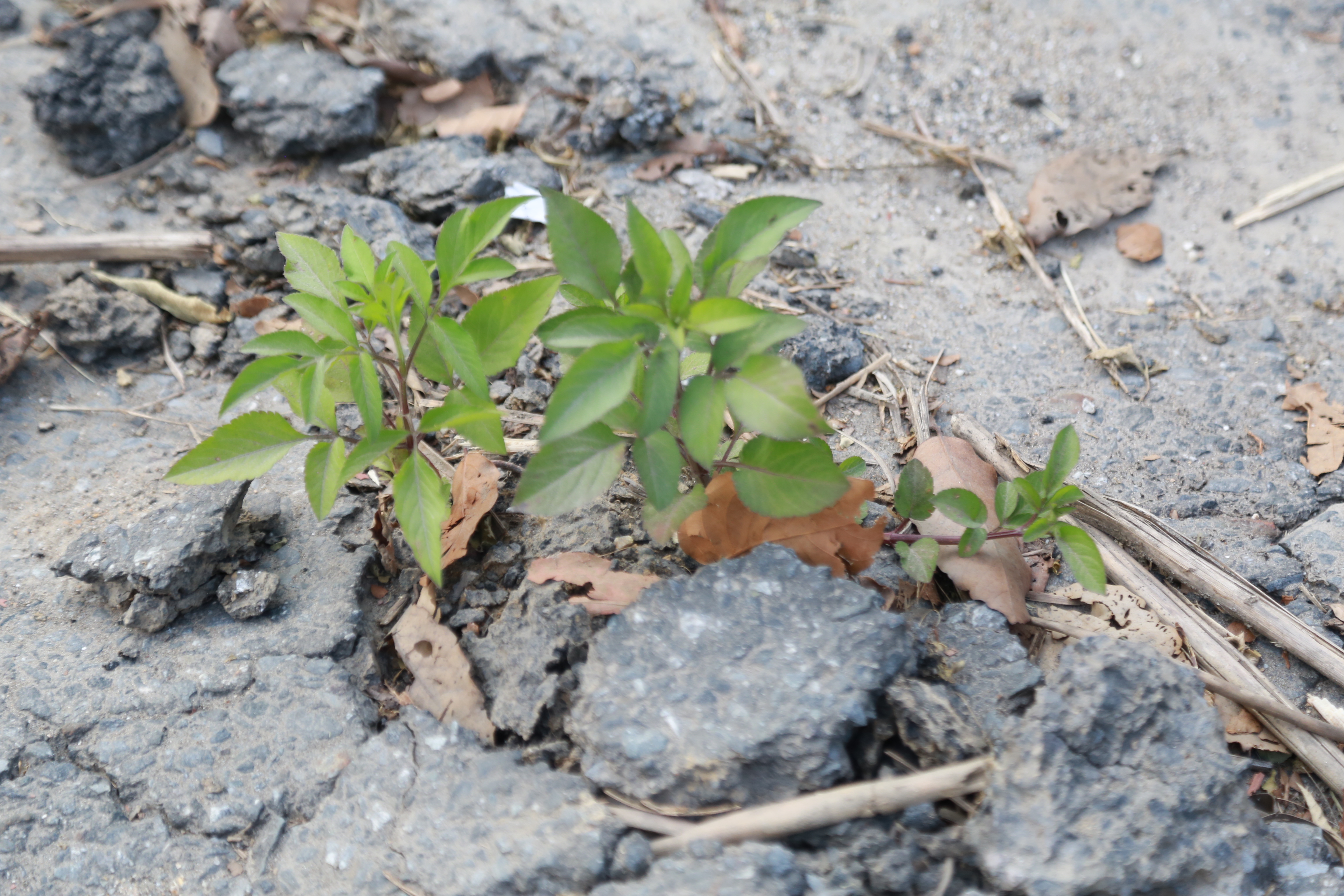 Cây dại mọc trên nền đường tại vị trí hư hỏng. Ảnh: TN
