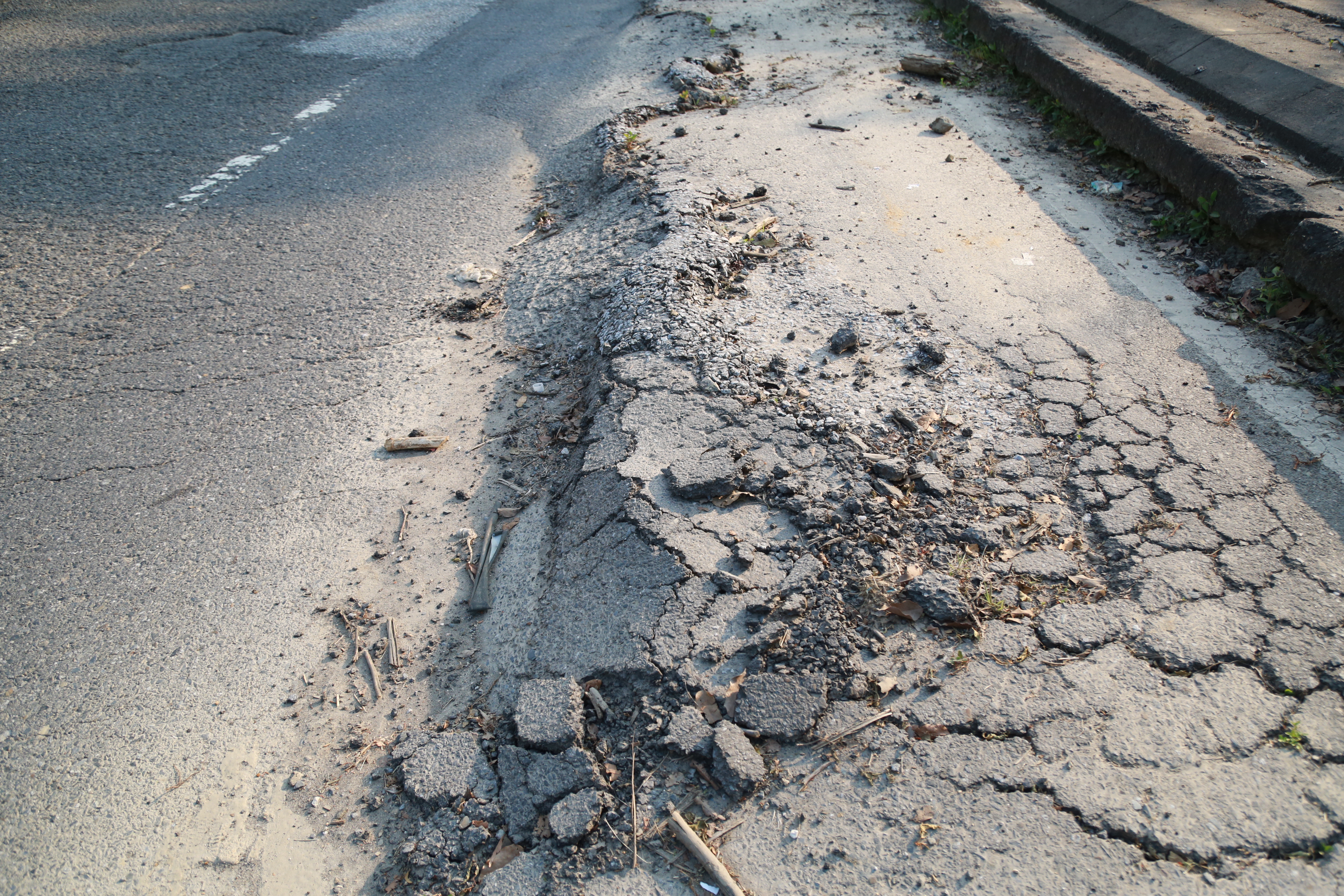 Mảng bê tông bong tróc, vô tình trở thành bẫy giao thông. Ảnh: TN