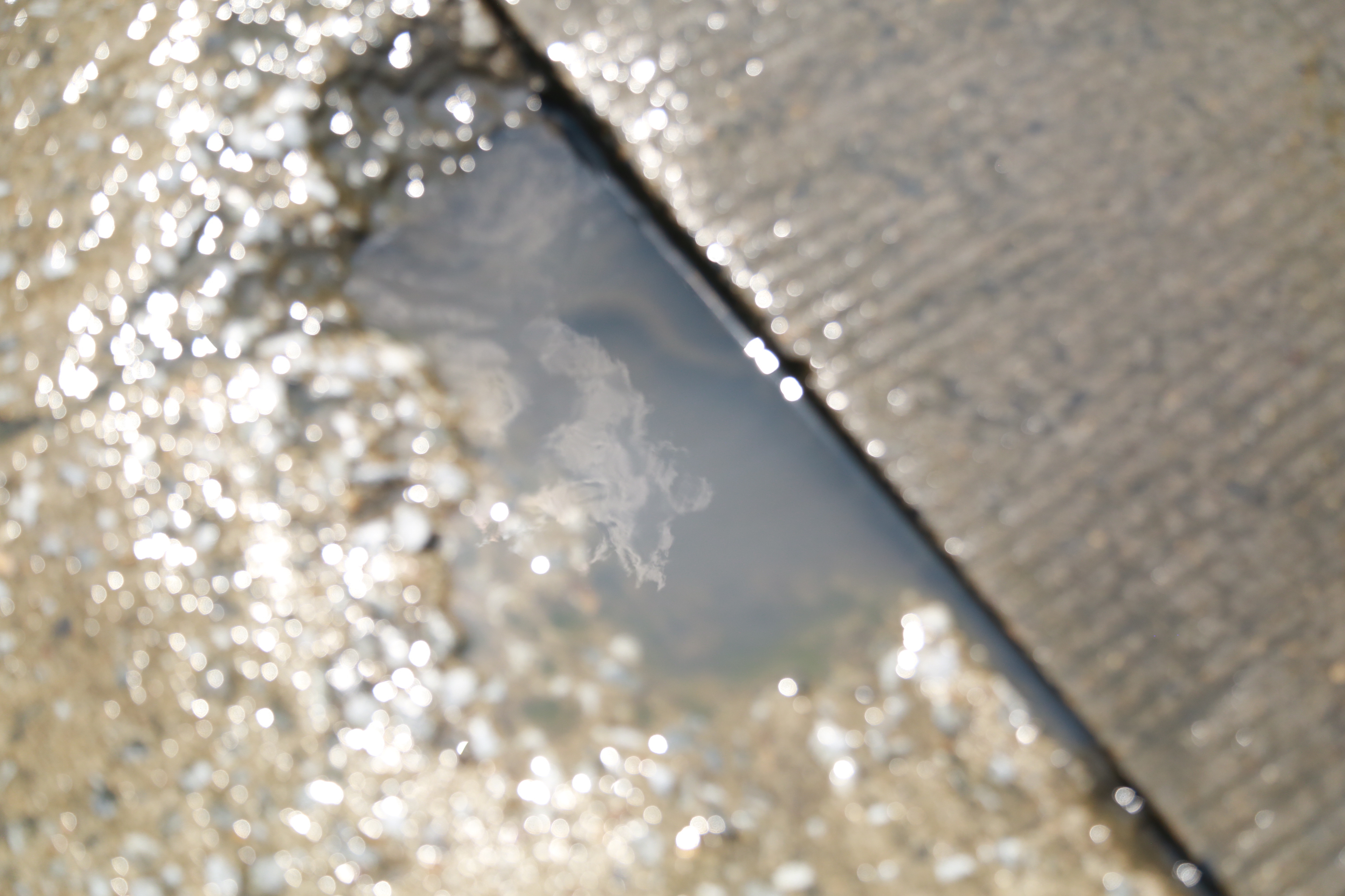 Nước rỉ từ dưới mặt đường lên, đọng thành hố sâu. Ảnh: TN