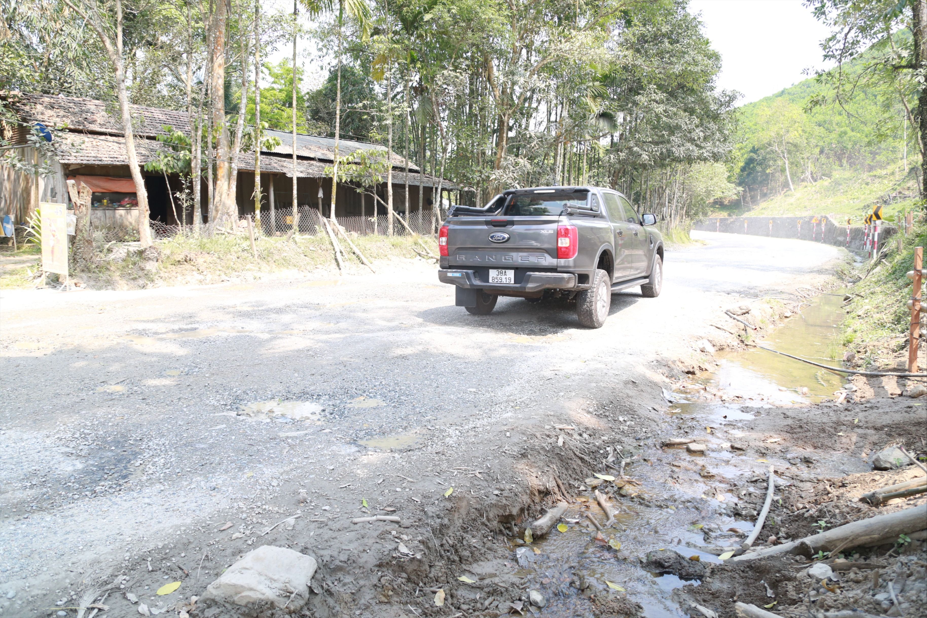Ngoài ra, nhiều vị trí hư hỏng, xuống cấp sau mùa mưa 2025 vẫn chưa khắc phục xong. Đặc biệt, đoạn vị trí di tích Trường Sơn- phía trên điểm giao nhau giữa đường Hồ Chí Minh và Quốc lộ 14E, sau đợt mưa lớn năm 2020, mặt đường xuất hiện nhiều điểm nhấp nhô, nứt nẻ.