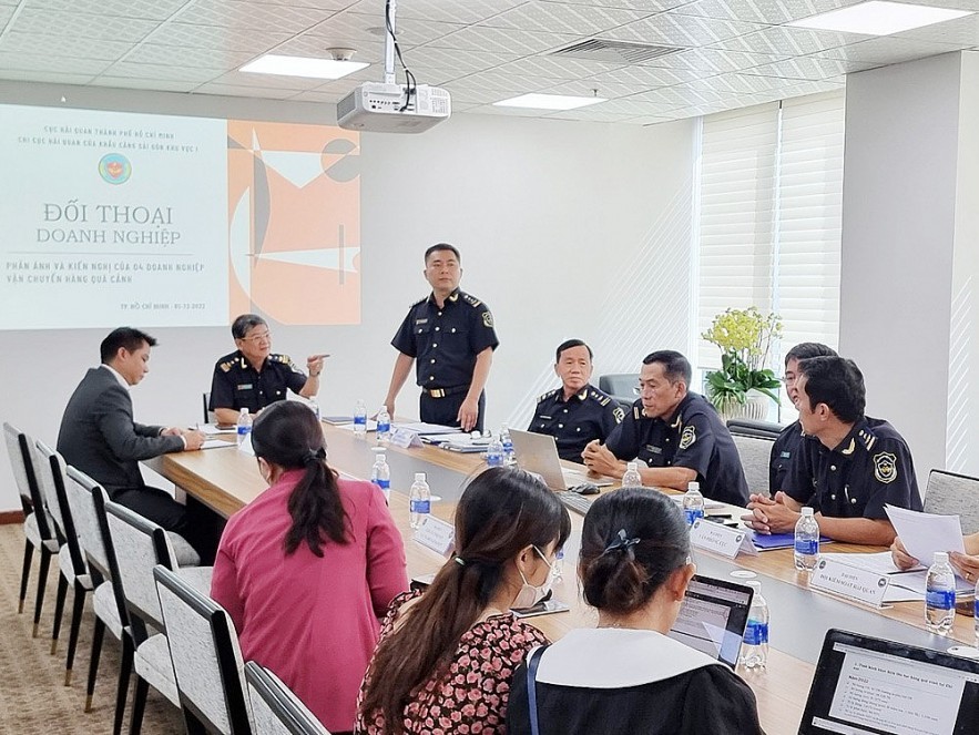 Chi cục Hải quan Khu vực II đối thoại với các doanh nghiệp kinh doanh vận chuyển hàng quá cảnh. Ảnh: Đỗ Doãn