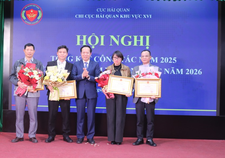 Dịp này, Chủ tịch UBND tỉnh khen thưởng 4 doanh nghiệp có thành tích xuất sắc trong hoạt động xuất nhập khẩu; đồng thời trao Bằng khen cho tập thể Chi cục Hải quan khu vực XVI vì có thành tích trong công tác thu nộp ngân sách năm 2025. Về công tác Đảng, Đảng bộ Chi cục Hải quan khu vực XVI được Đảng ủy UBND tỉnh tặng Giấy khen; 1 đảng viên được khen thưởng vì có thành tích tiêu biểu trong năm 2025.