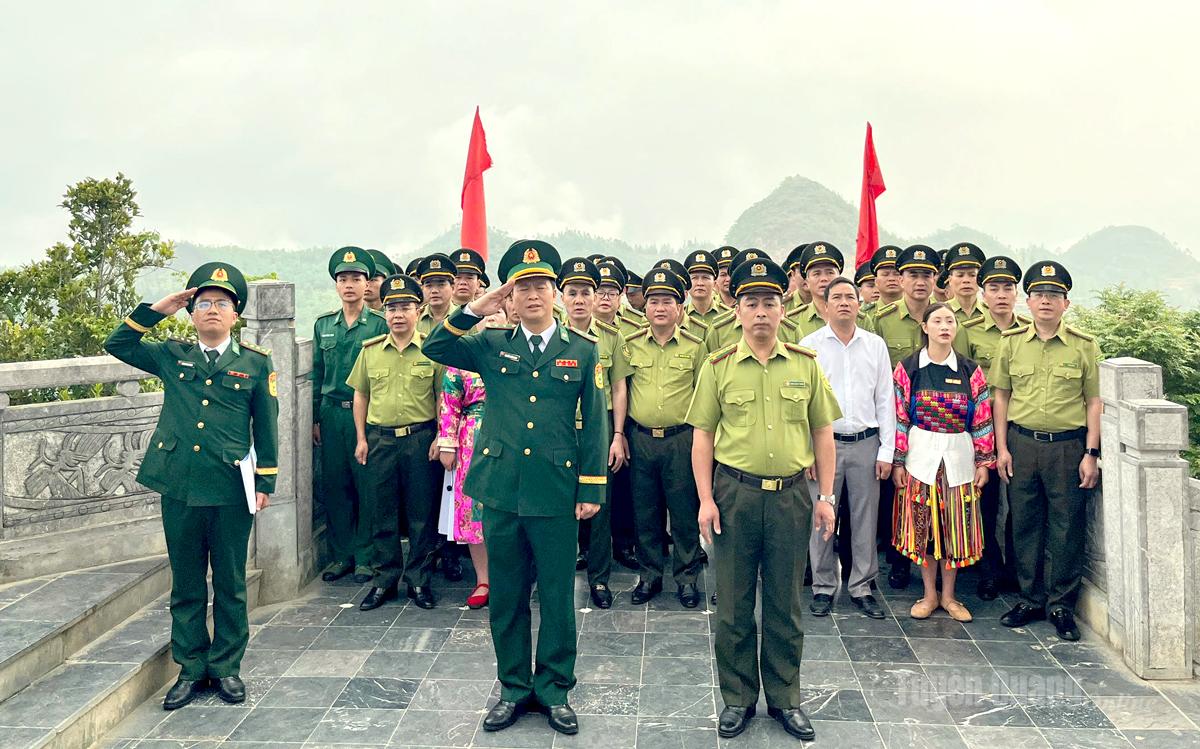 Đại biểu tham dự hội nghị thực hiện nghi lễ chào cờ tại Cột cờ quốc gia Lũng Cú.