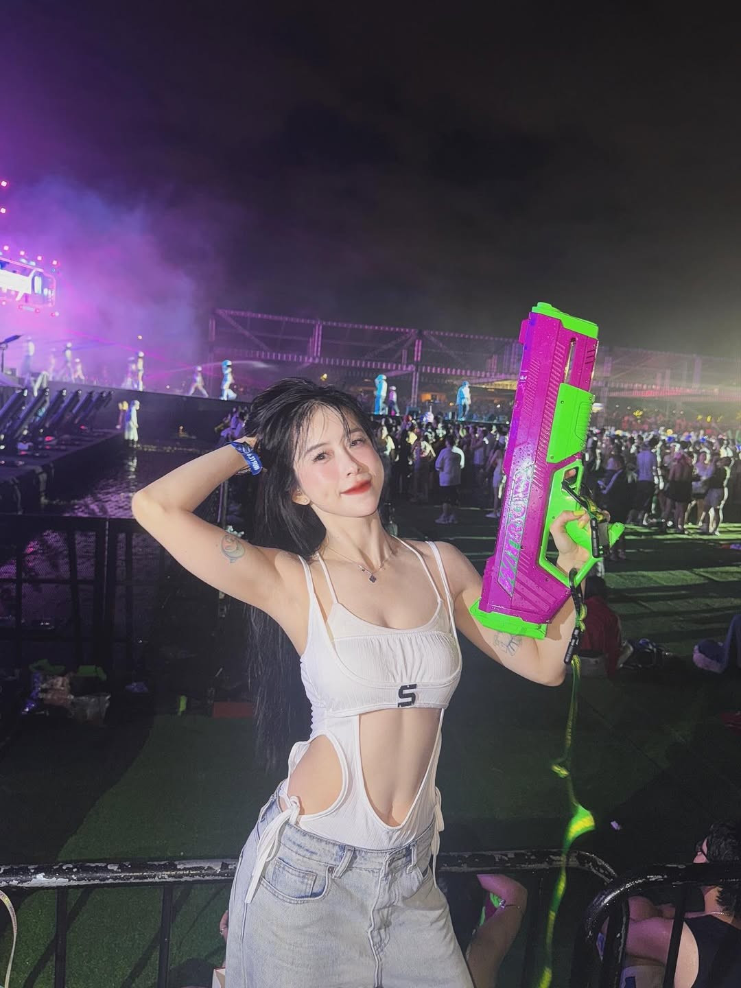 Xuất hiện tại lễ hội, Châu Tuyết Vân chọn trang phục cá tính và nổi bật, phù hợp hoàn hảo với không khí lễ hội nước. (Ảnh: IGNV)