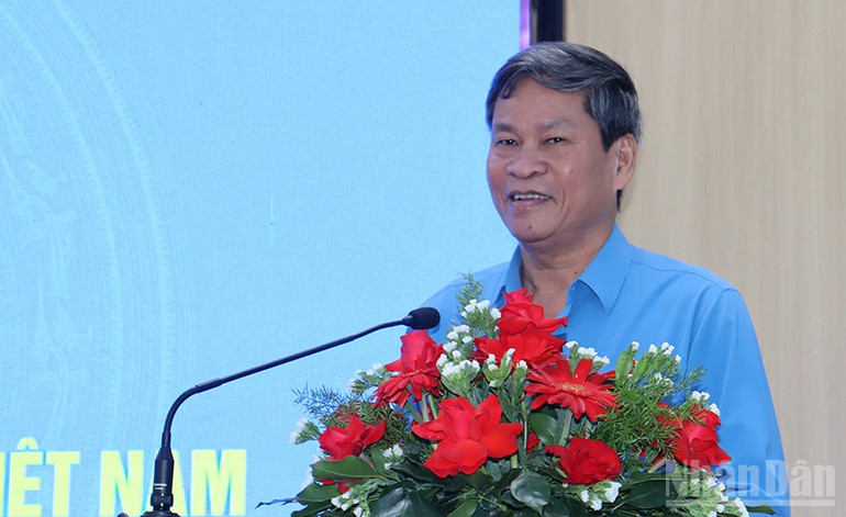 Đồng chí Huỳnh Thanh Xuân, Phó Chủ tịch Tổng Liên đoàn Lao động Việt Nam phát biểu tại hội nghị.