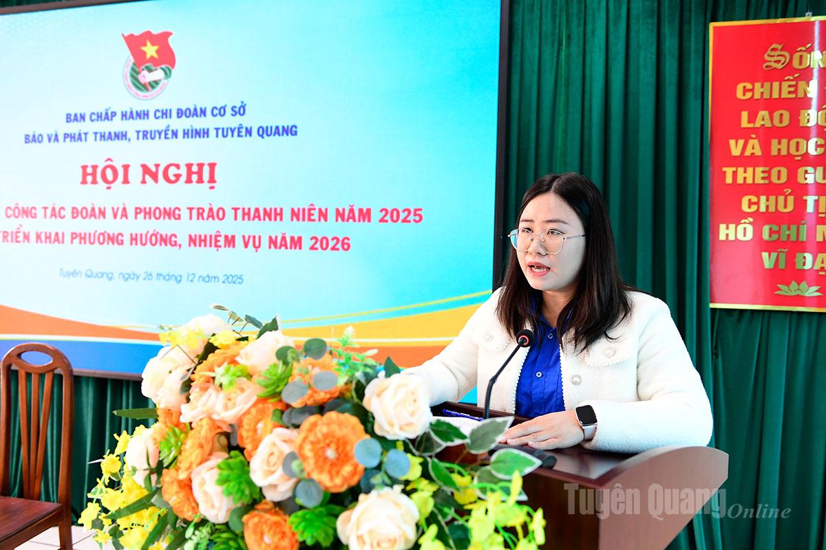 Bí thư Chi đoàn Báo và phát thanh, truyền hình Tuyên Quang báo cáo công tác Đoàn năm 2025, phương hướng nhiệm vụ năm 2026.