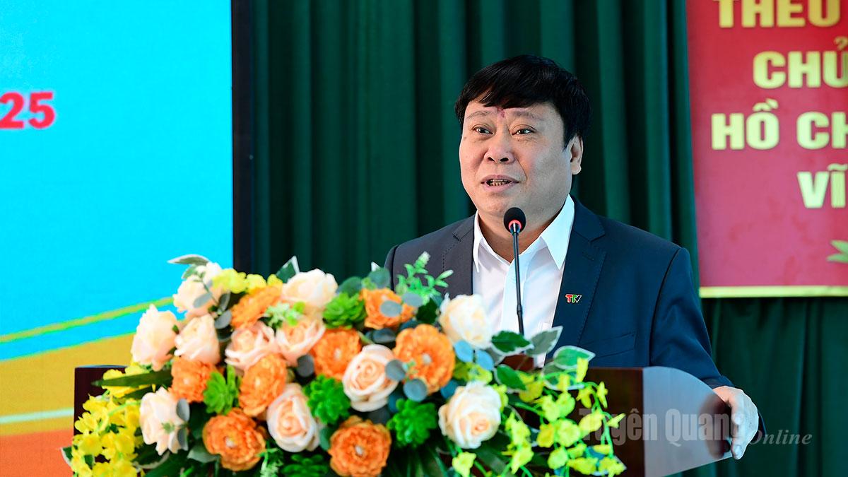 Đồng chí Mai Đức Thông, Ủy viên BCH Đảng bộ tỉnh, Bí thư Đảng ủy, Giám đốc Báo và phát thanh, truyền hình Tuyên Quang, Chủ tịch Hội Nhà báo tỉnh phát biểu chỉ đạo tại hội nghị.