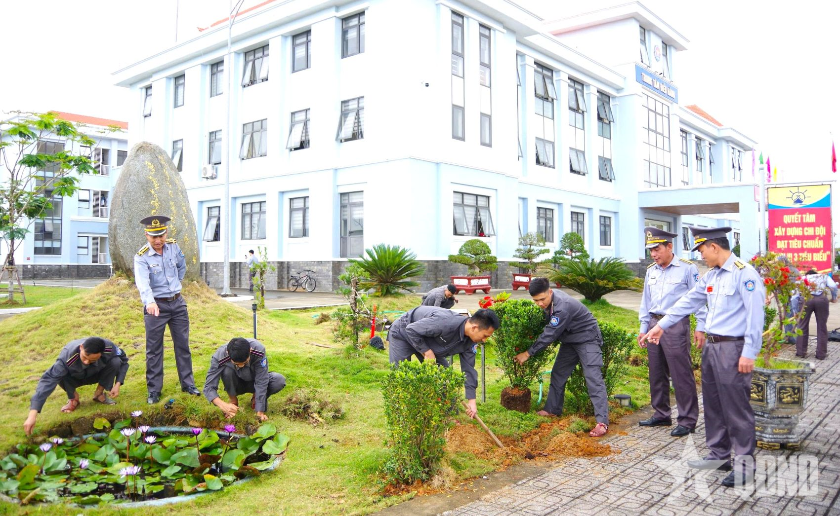 Cán bộ, nhân viên Chi đội Kiểm ngư số 3 tích cực trồng cây xanh và vệ sinh môi trường.