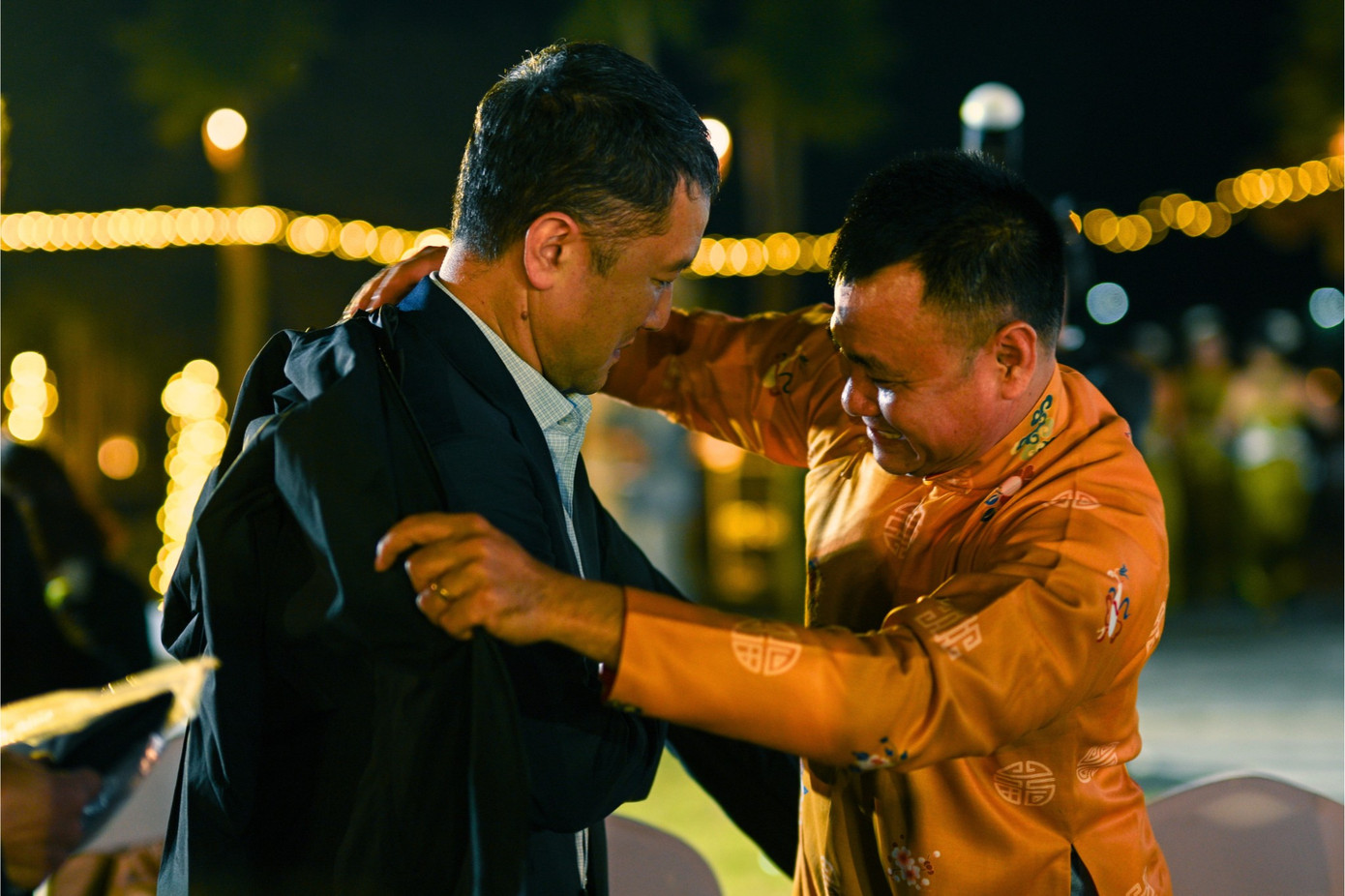 Trong phần giao lưu với khán giả tại sân khấu sự kiện, NSND Tự Long trong một phút cao hứng lên sân khấu thể hiện ca khúc Tình đất để thay mặt đoàn phim cảm ơn các lãnh đạo, các doanh nghiệp và bà con tại Ninh Bình đã và đang giúp đỡ đoàn quay phim và chúc đoàn phim cùng đoàn kết để có thể hoàn thành bộ phim một cách tốt nhất.