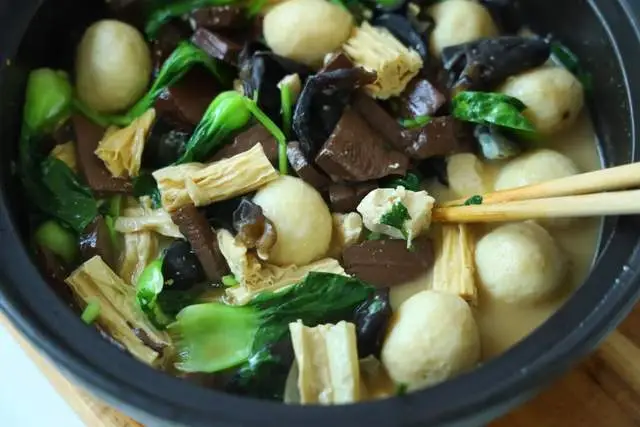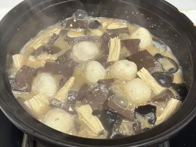 Tiếp tục cho cá viên chiên vào, đậy nắp, nấu vài phút cho các nguyên liệu vừa chín tới.