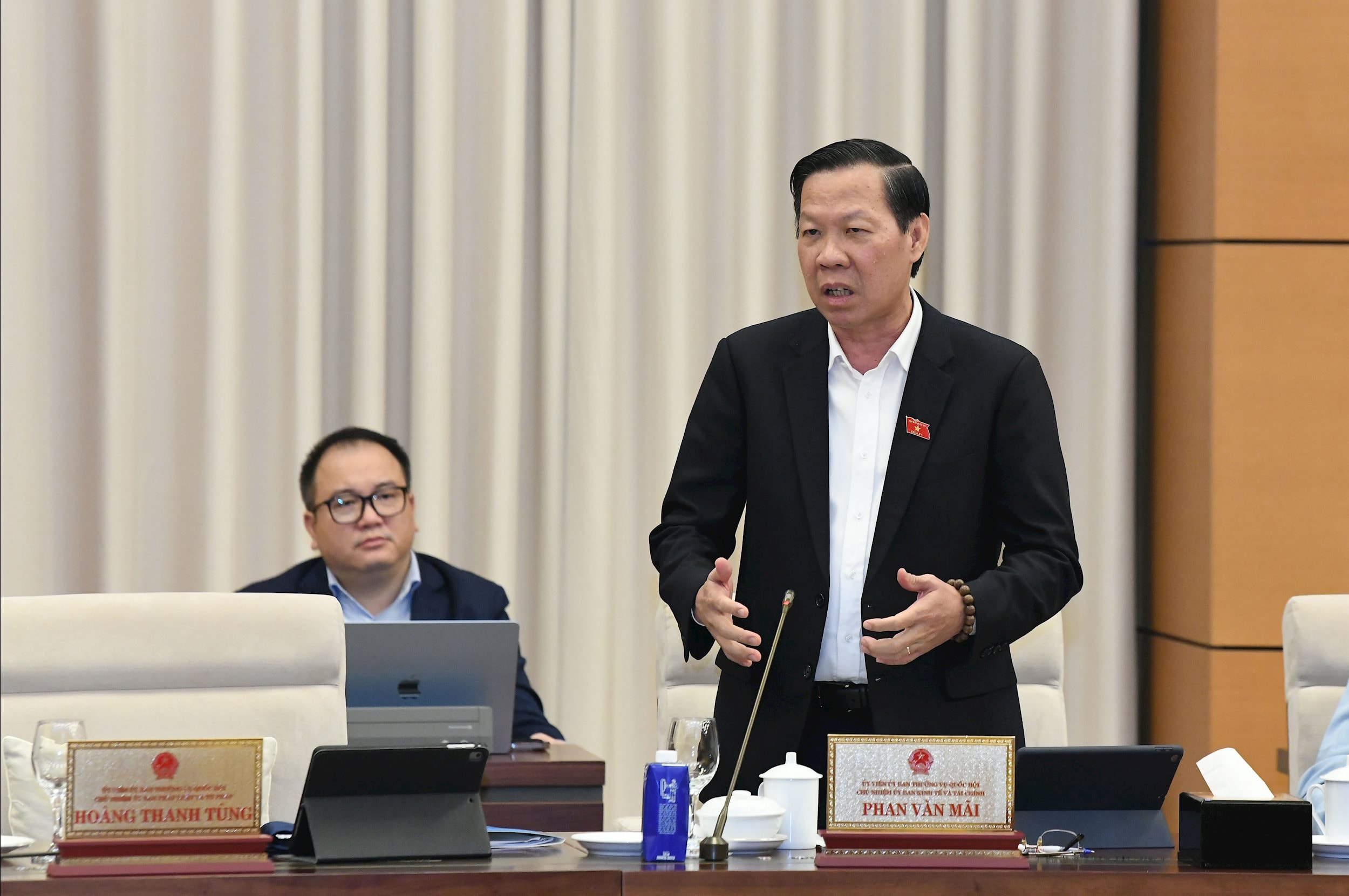 Chủ nhiệm Ủy ban Kinh tế và Tài chính Phan Văn Mãi trình bày Báo cáo thẩm tra