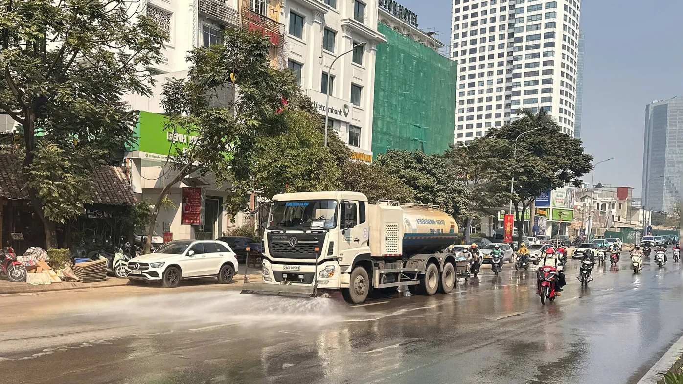 Về ban đêm, khi đường phố vắng vẻ là lúc các xe rửa đường áp lực cao và xe quét hút công suất lớn vào cuộc. Các "biệt đội" này làm việc xuyên đêm để gột rửa bụi đường, trả lại mặt phố sáng bóng vào sáng hôm sau.