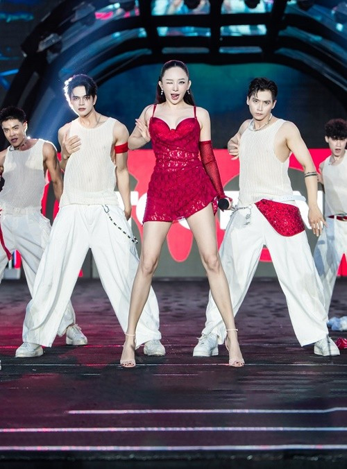 Nữ ca sĩ thay đến 4 bộ trang phục khi trình diễn. Ảnh: FB Tóc Tiên.