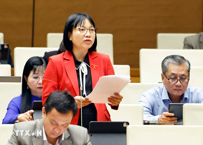 Đại biểu Quốc hội thành phố Hải Phòng Nguyễn Thị Việt Nga phát biểu tại hội trường. (Ảnh: Doãn Tấn/TTXVN)