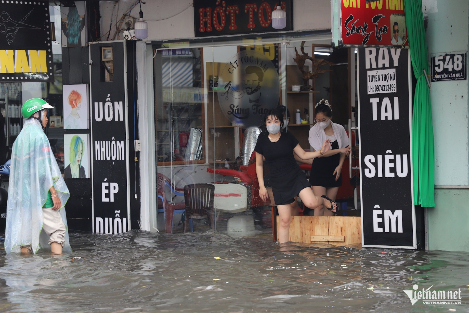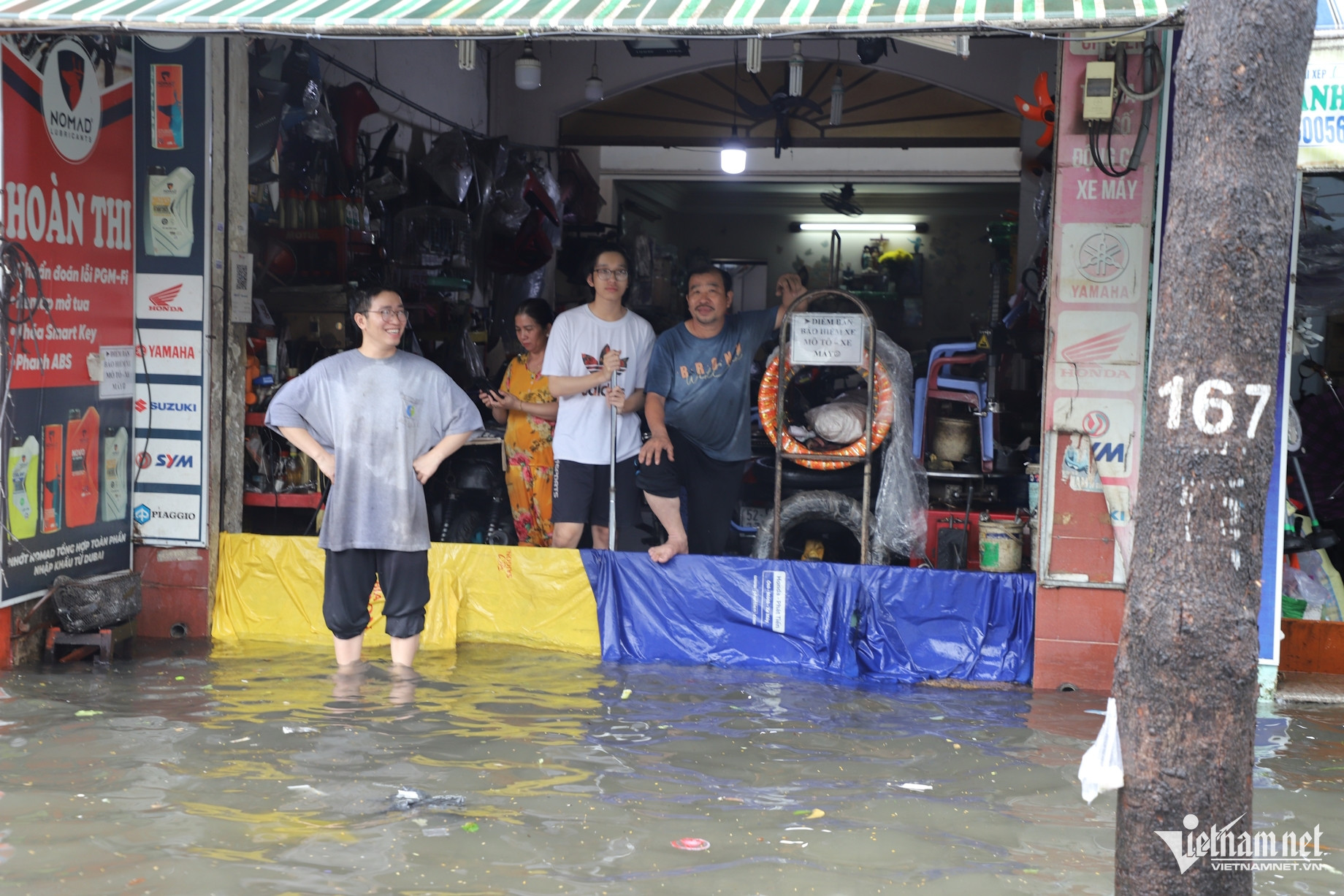 Đường ngập nặng, nước tràn vào nhà khiến các hoạt động kinh doanh bị đóng băng.