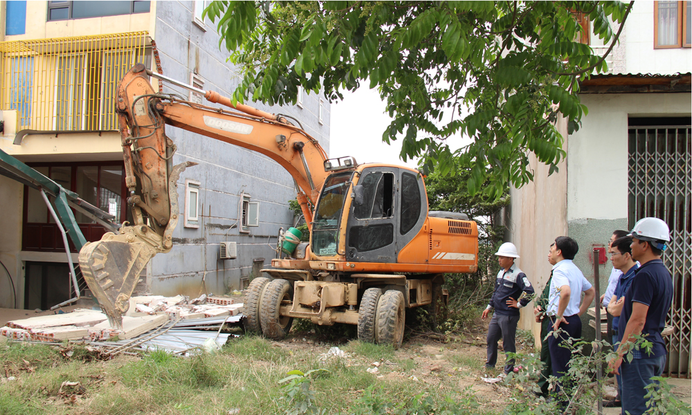Đơn vị thi công tháo dỡ nhà của một hộ dân ở thôn Thủ Pháp, xã Gia Bình (một trong những hộ đồng thuận bàn giao mặt bằng trước cho dự án).