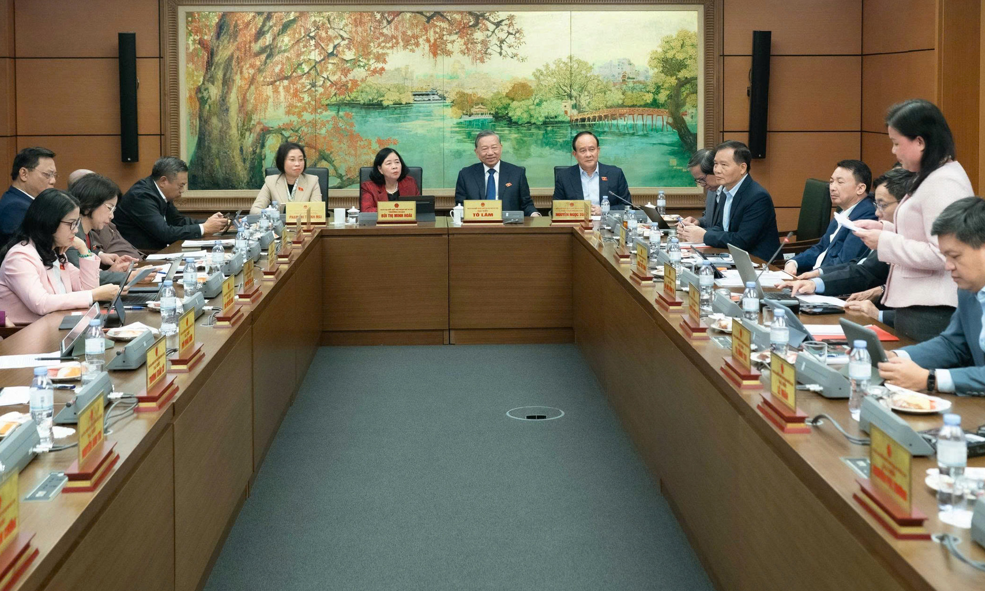 Tổng Bí thư Tô Lâm và Đoàn đại biểu Quốc hội TP Hà Nội tại phiên thảo luận tổ Kỳ họp thứ 10, Quốc hội khóa XV. (Ảnh: quochoi.vn)