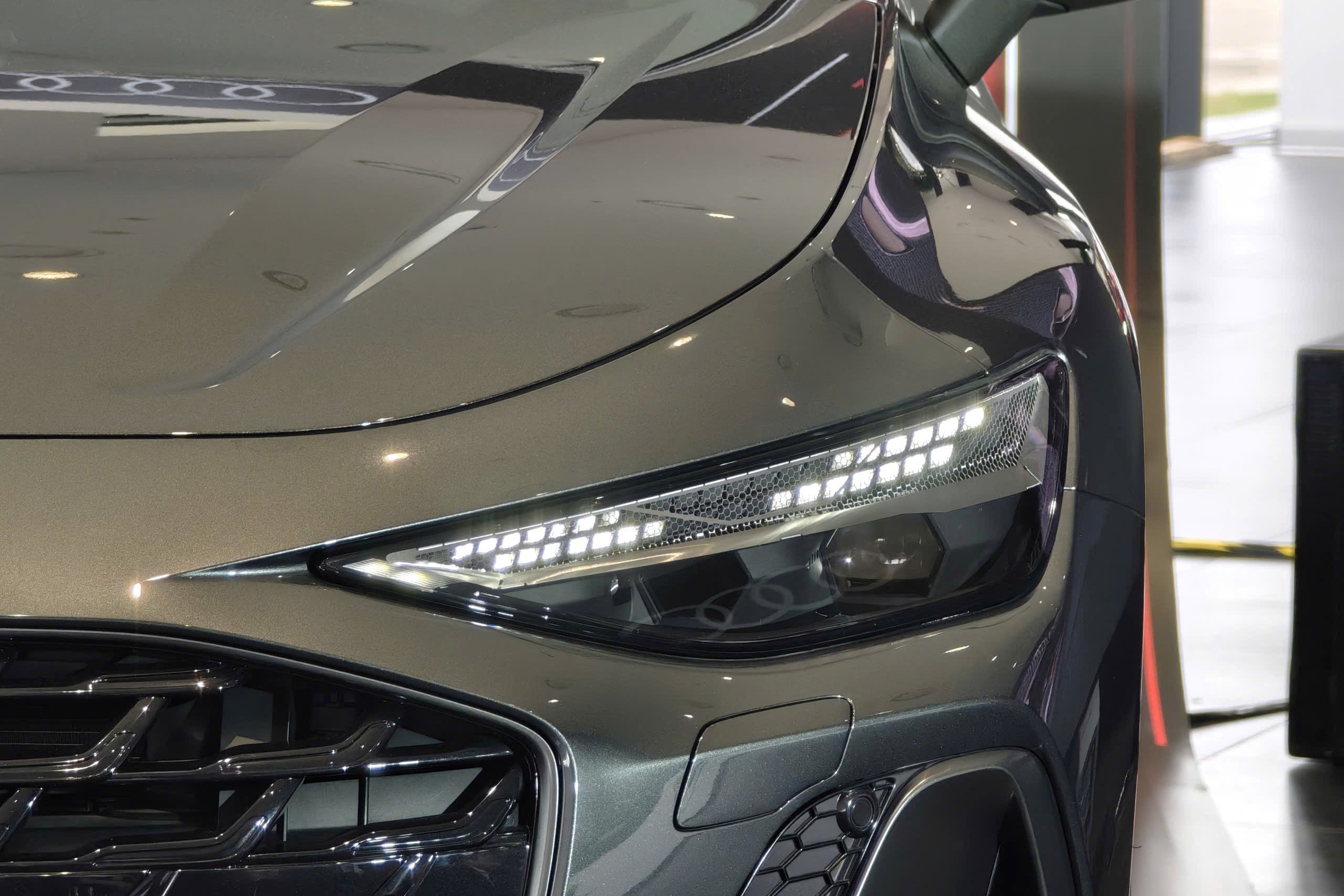 Đầu xe được thiết kế thể thao với cụm đèn trước tích hợp thay vì tách rời như A6 e-tron.