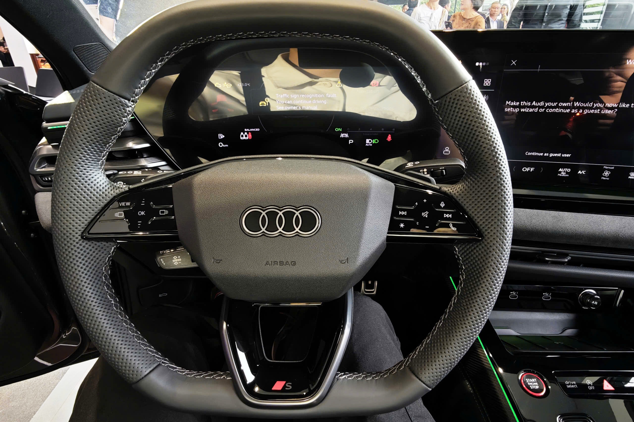 Vô lăng dạng thể thao 3 chấu quen thuộc vẫn xuất hiện trên Audi A6 2026. Điểm đặc biệt là công nghệ HUD trên A6 2026 đã được nâng cấp, với kích thước hiển thị lớn hơn.