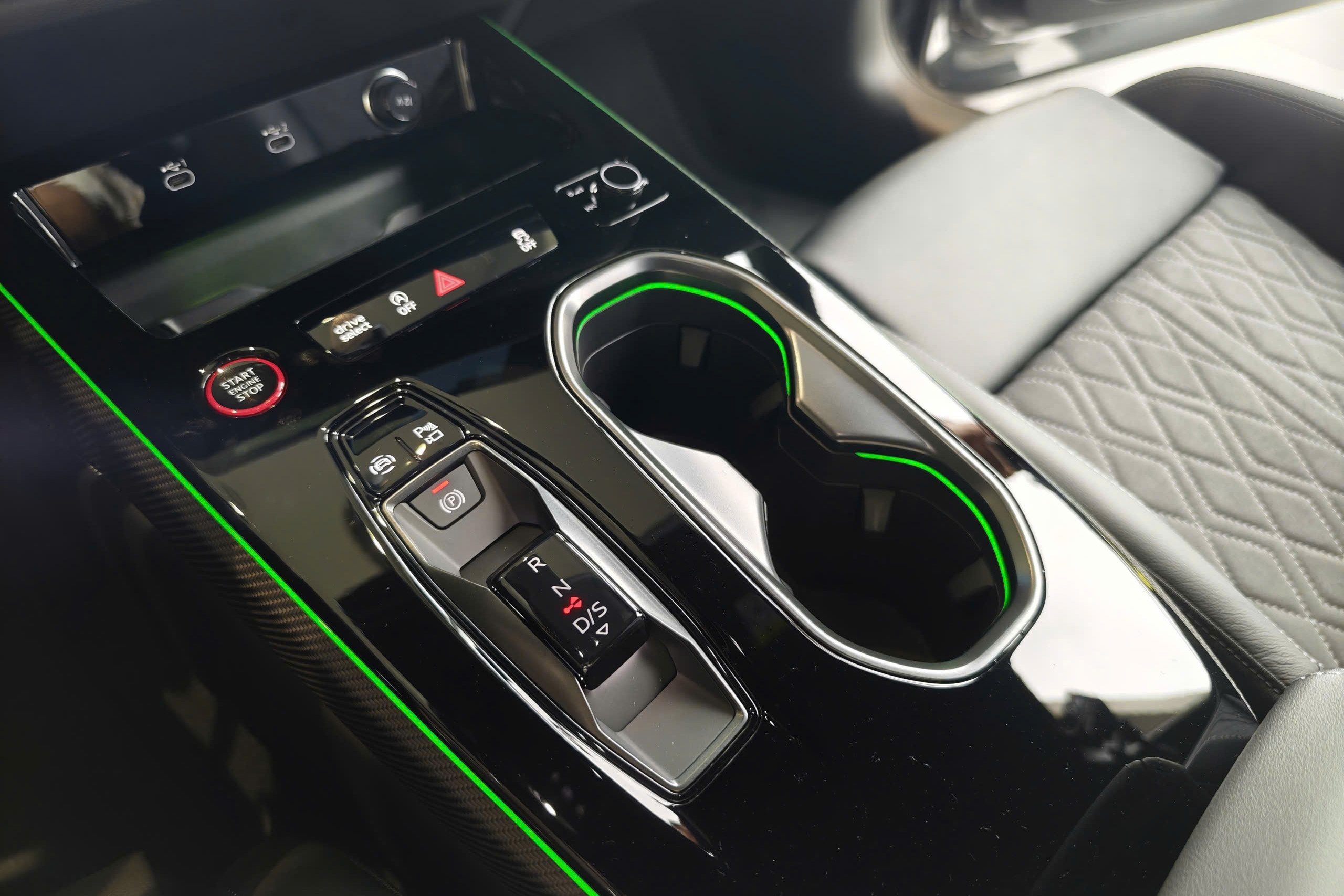 Khu vực yên ngựa được trang bị hộc giữ nước, cần số điện tử. Xe được trang bị hệ thống âm thanh 16 loa Bang & Olufsen.