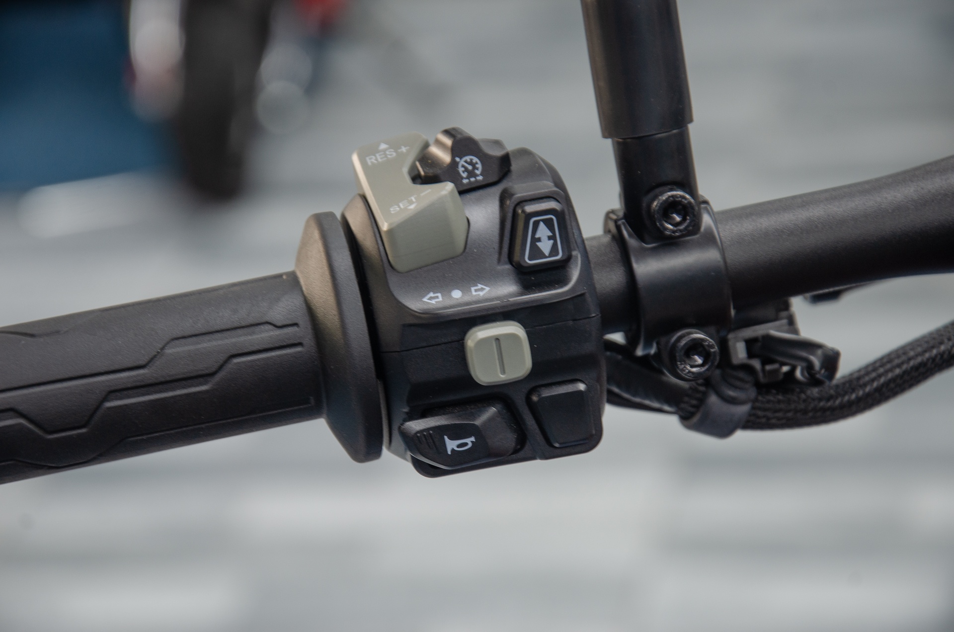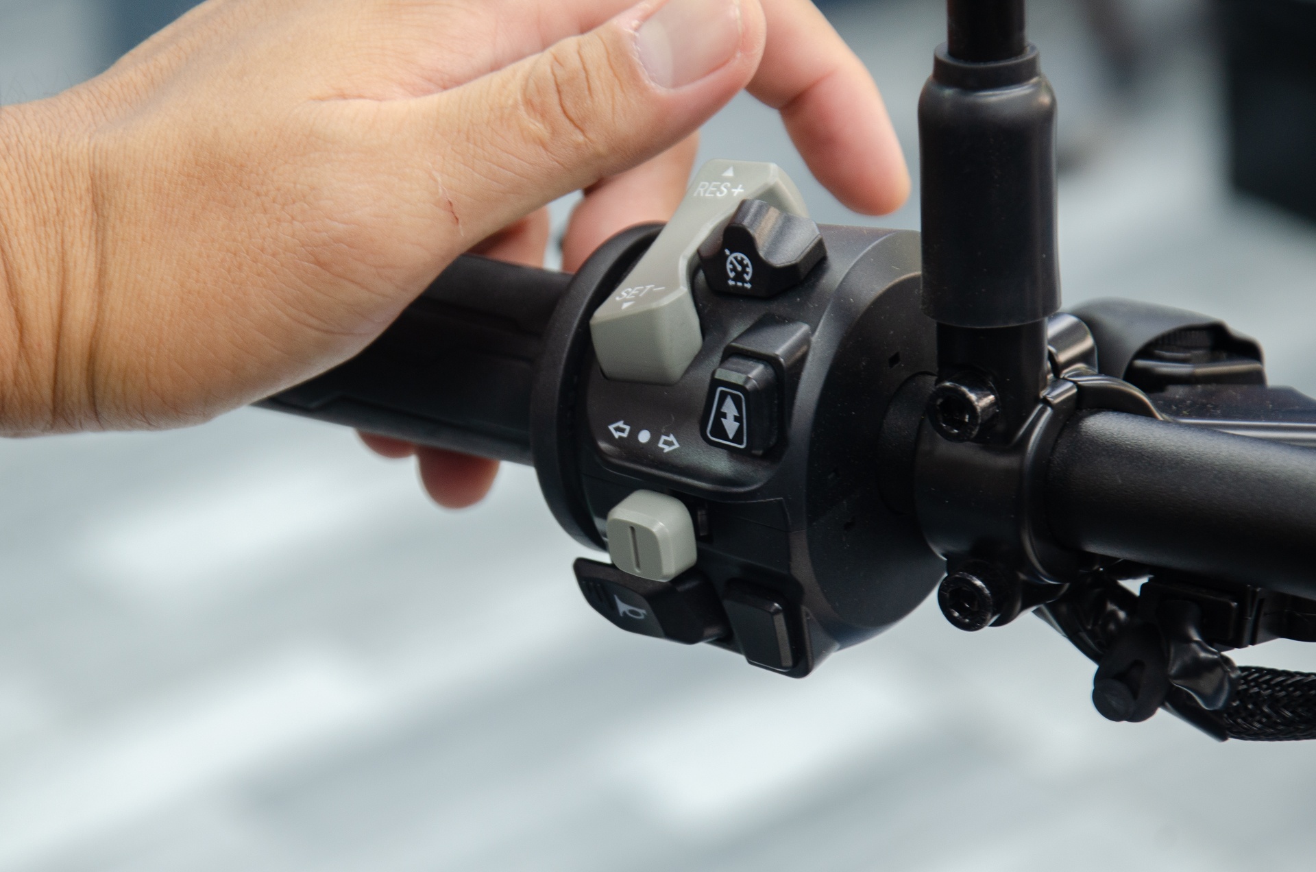 Chiều cao yên xe Benda Dark Flag 500 Commander có thể điều chỉnh nhờ vào hệ thống treo khí nén. Người dùng có thể chủ động tăng/giảm thông qua nút bấm trên cùm công tắc.
