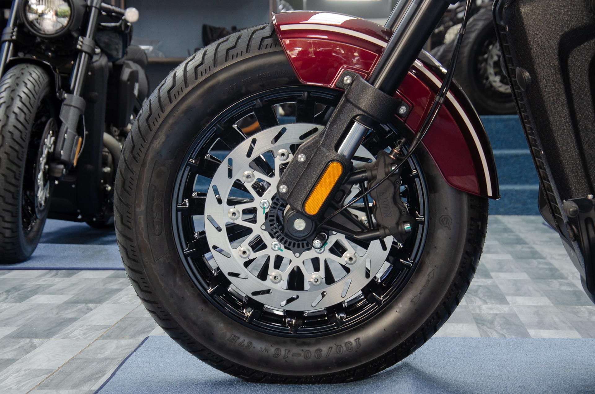 Phía trước, xe sử dụng phuộc upside-down. Mâm xe là loại nhôm đúc đa chấu kích thước 16 inch đi kèm bộ lốp thông số 130/90.
