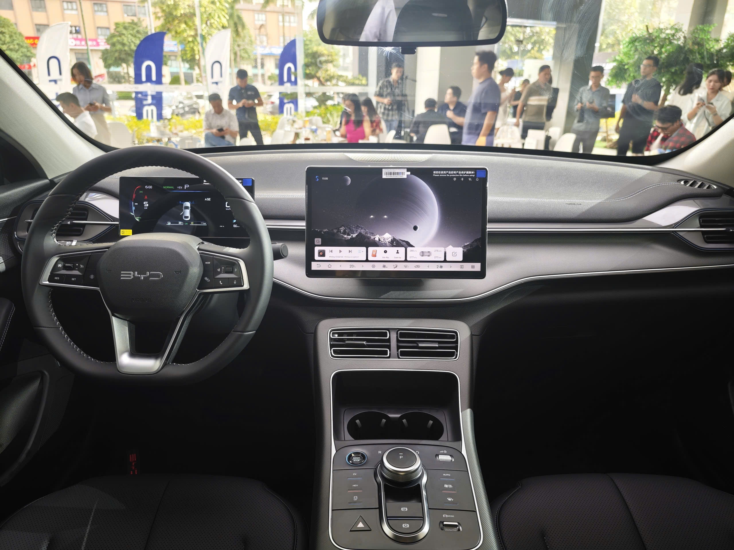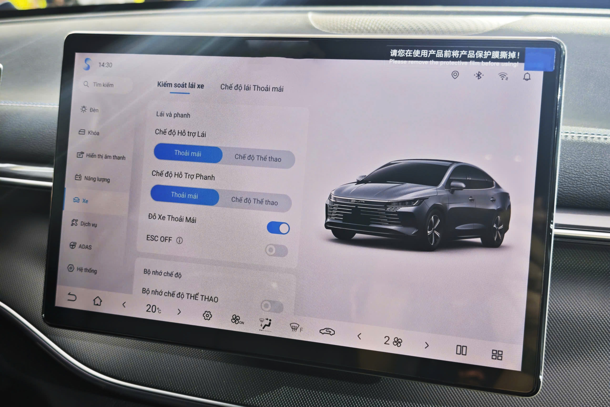 Bước vào bên trong, Seal 5 trở nên quen thuộc khi thừa hưởng mọi thiết kế hiện đại tương tự các cái tên cùng nhà. Vô lăng 3 chấu cùng màn hiển thị tốc độ LCD 8,8 inch.