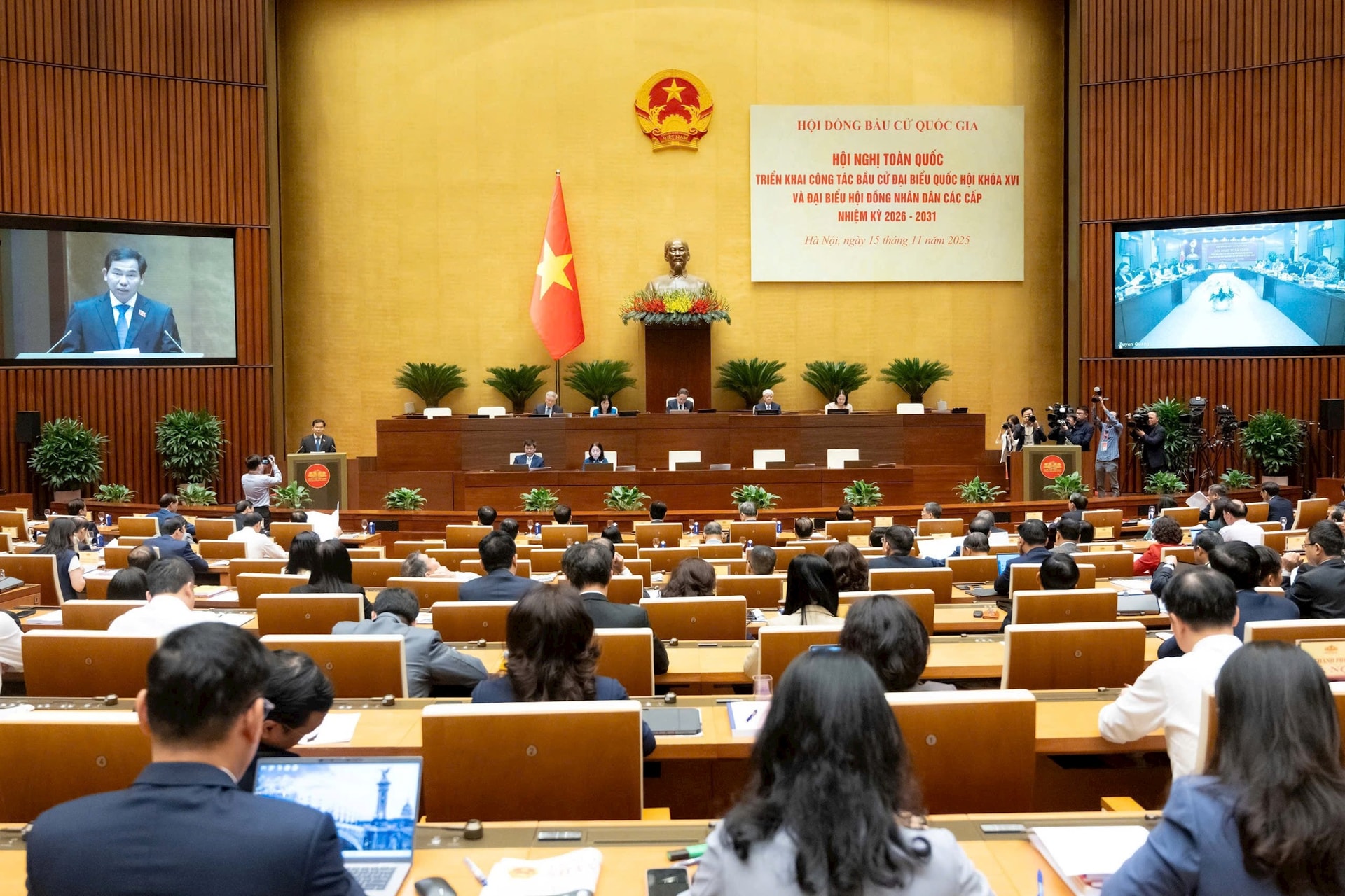 Theo đó, cuộc bầu cử sẽ được tổ chức thống nhất vào chủ nhật, ngày 15-3-2026 với quy mô ngày hội của toàn dân. Tinh thần chỉ đạo xuyên suốt của cuộc bầu cử là kiên quyết không vì cơ cấu mà hạ thấp tiêu chuẩn. Yêu cầu về tiêu chuẩn và chất lượng đại biểu được đặt làm trọng tâm, quyết định sự thành công của nhiệm kỳ 2026-2031.