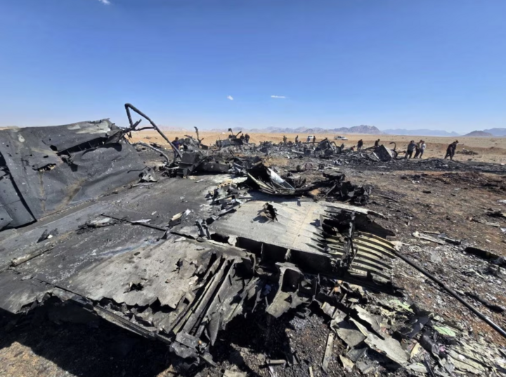 Mảnh vỡ của máy bay Mỹ và cánh quạt của trực thăng ở Isfahan, Iran. (Ảnh: Reuters)