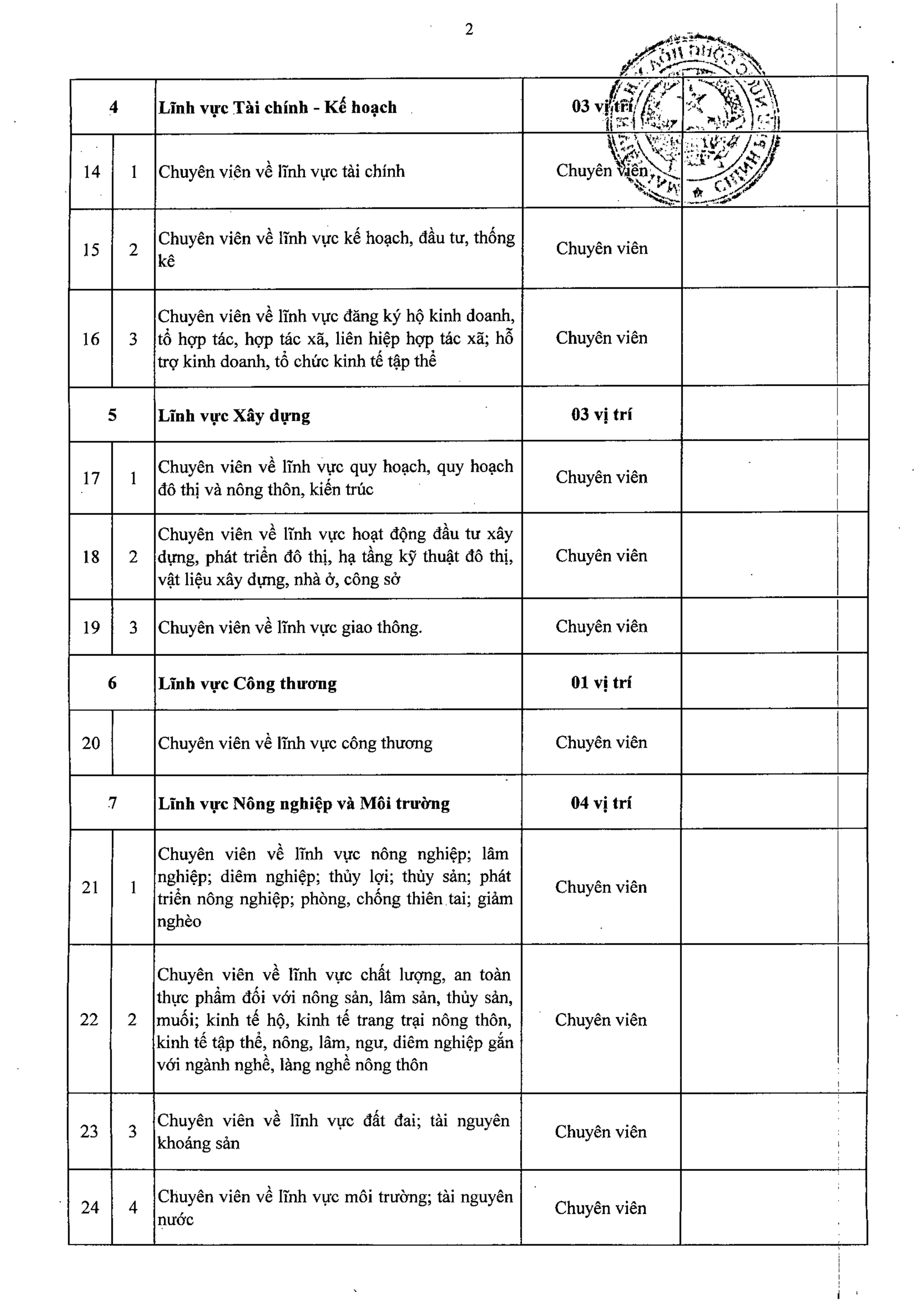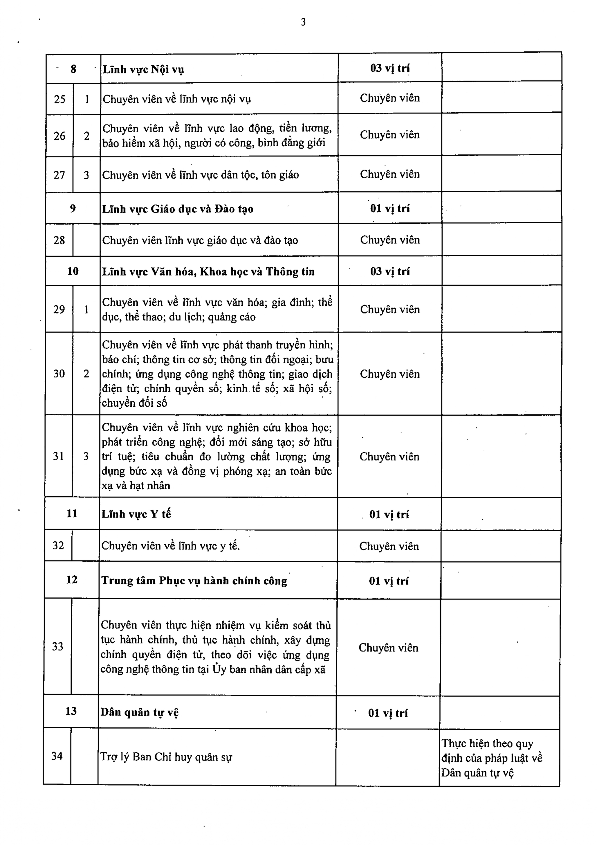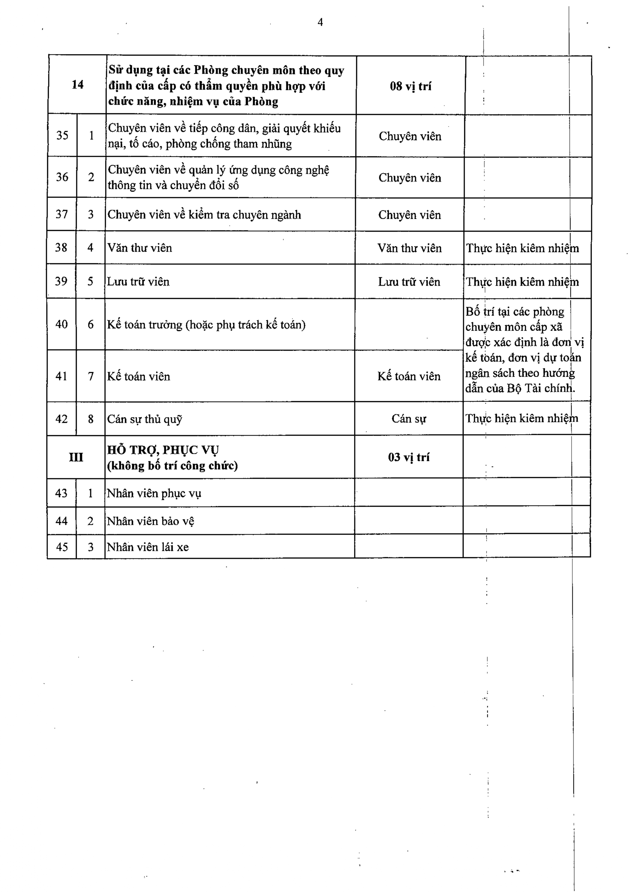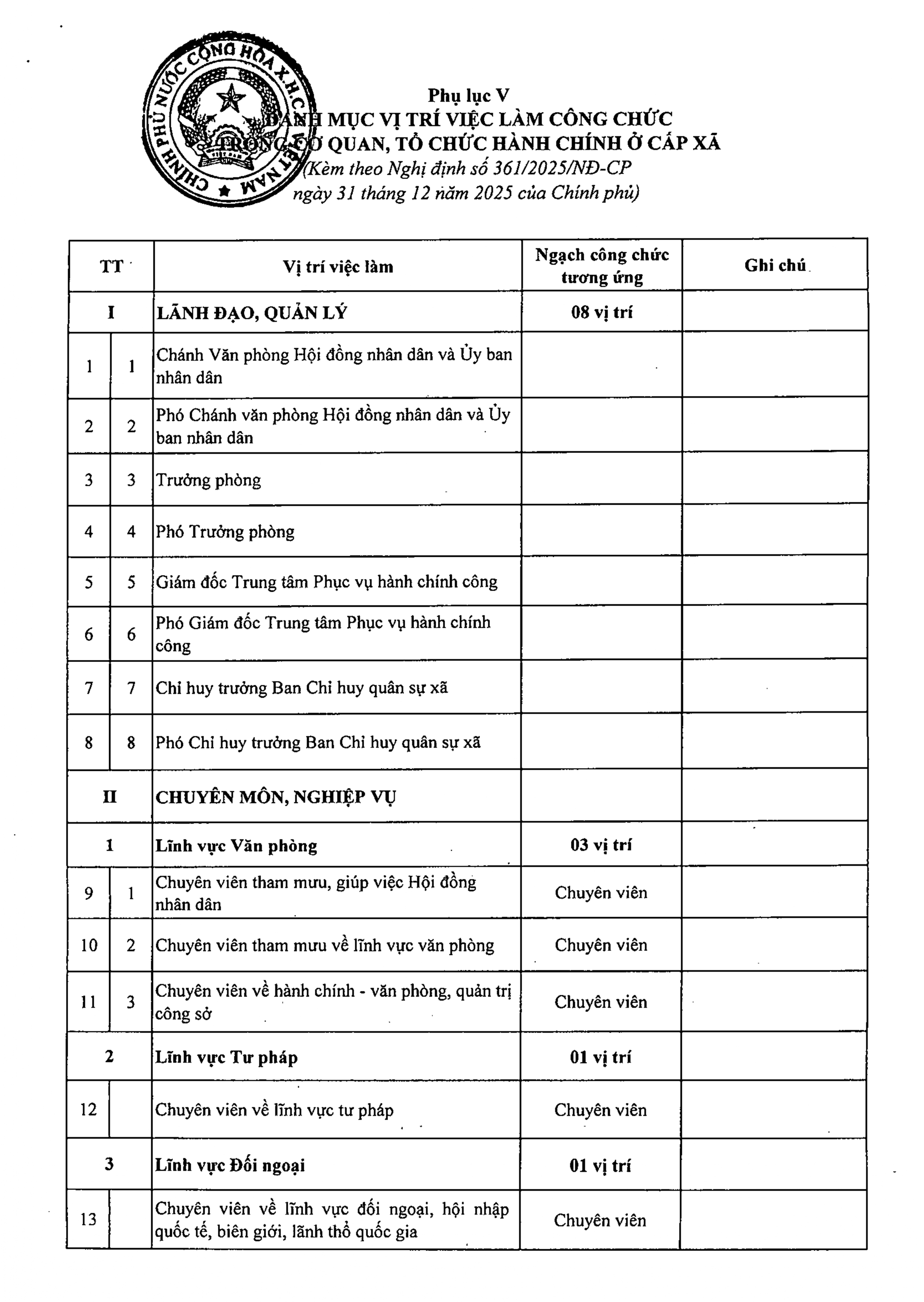 Danh mục vị trí việc làm công chức trong cơ quan, tổ chức hành chính ở cấp xã