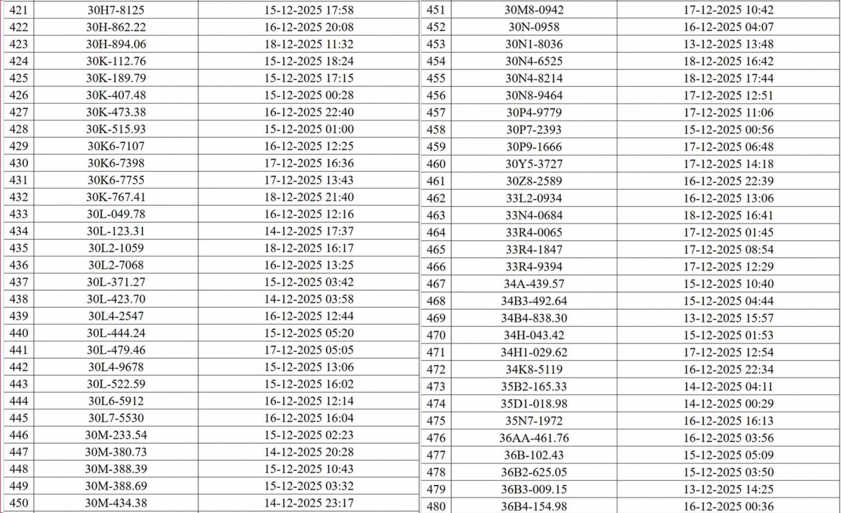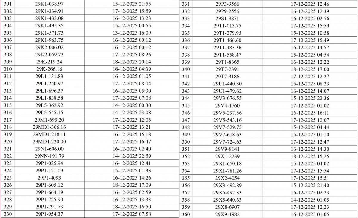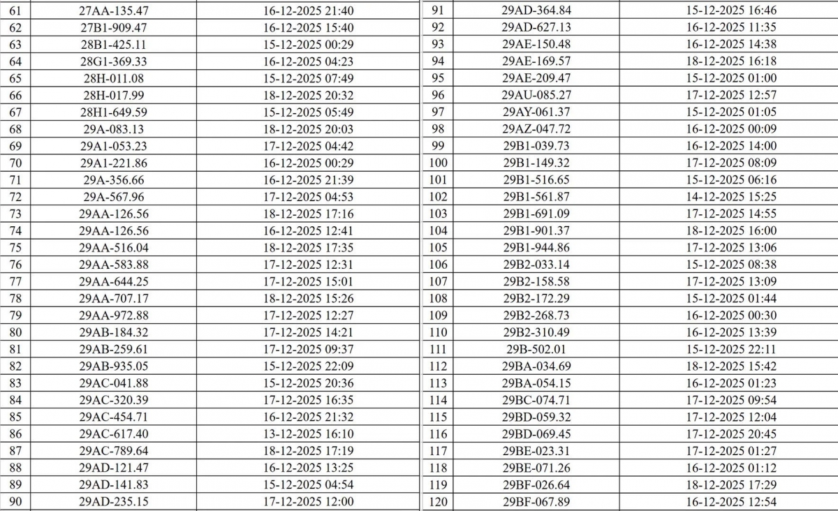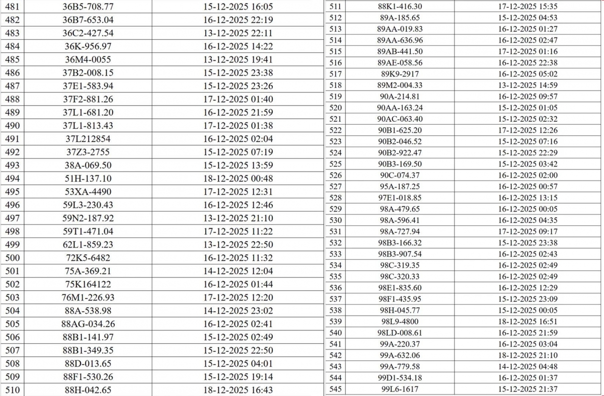 Danh sách các phương tiện vi phạm (đợt 1):