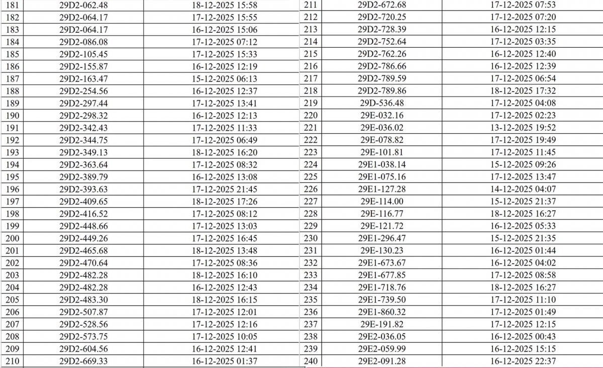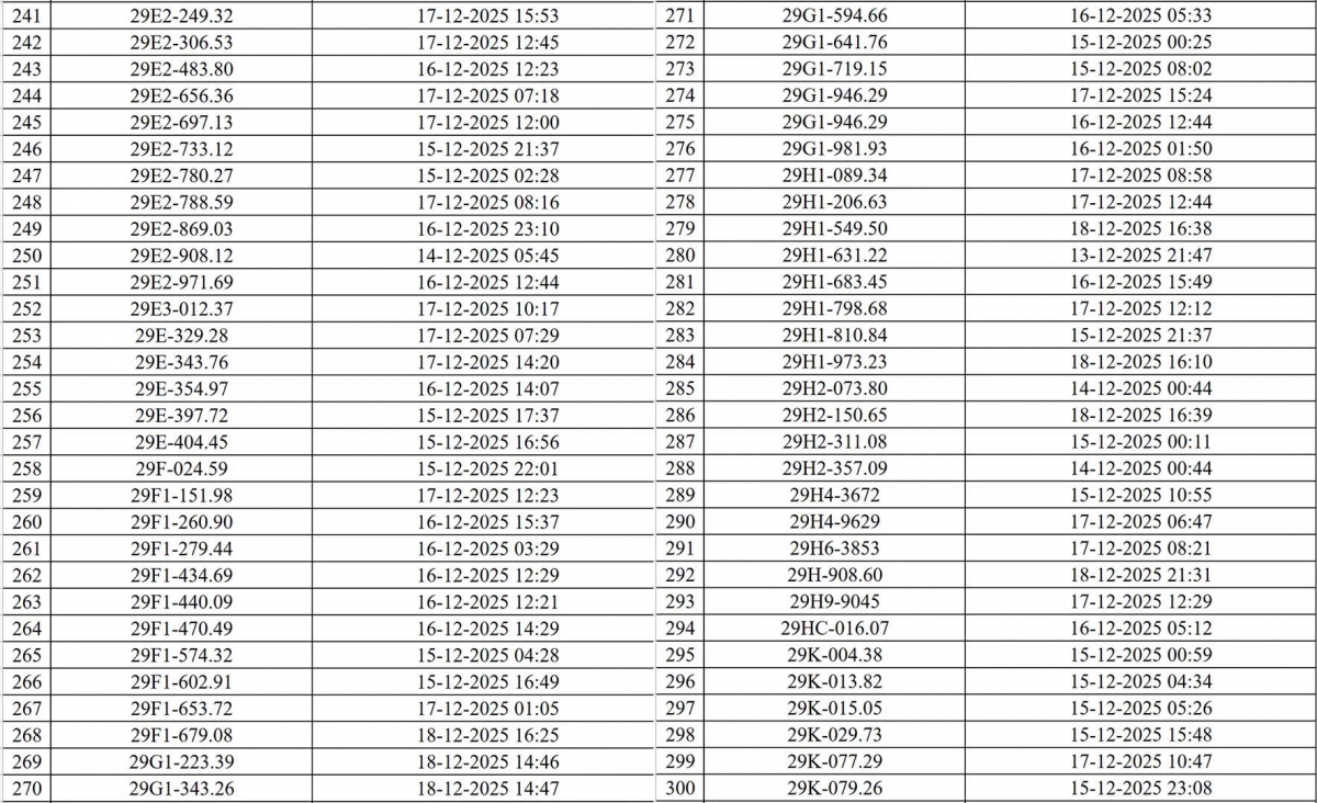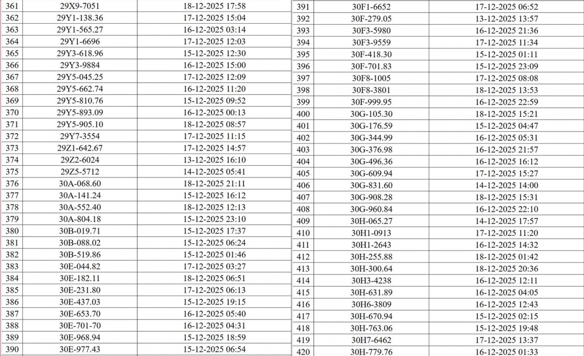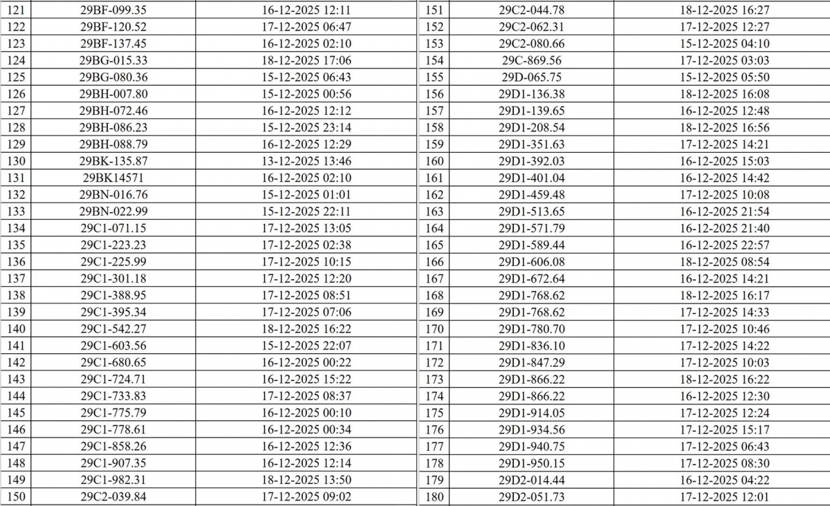 Danh sách các phương tiện vi phạm (đợt 1):