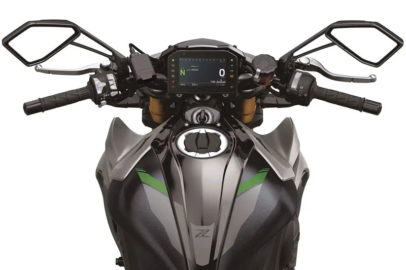 Phần đầu xe được tinh chỉnh với cụm đèn pha mới mang thiết kế hiện đại hơn, trong khi đèn định vị vẫn đặt phía trước tay lái, giữ lại dấu ấn nhận diện quen thuộc của dòng Z. Khung xe dạng nhôm đôi tiếp tục được sử dụng, trong đó động cơ đóng vai trò như một thành phần chịu lực, giúp tăng độ cứng vững và tối ưu khả năng vận hành. Hệ thống ống xả cũng được thiết kế lại theo hướng gọn gàng hơn, đồng thời hạ thấp vị trí nhằm giảm trọng tâm và cải thiện độ ổn định khi chạy tốc độ cao.
