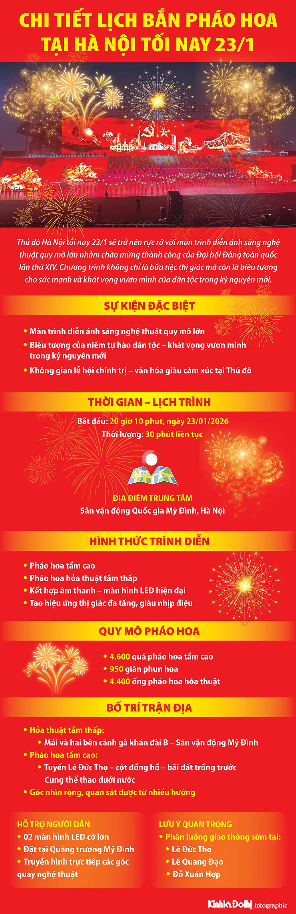 Chi tiết lịch bắn pháo hoa tại Hà Nội tối nay 23/1