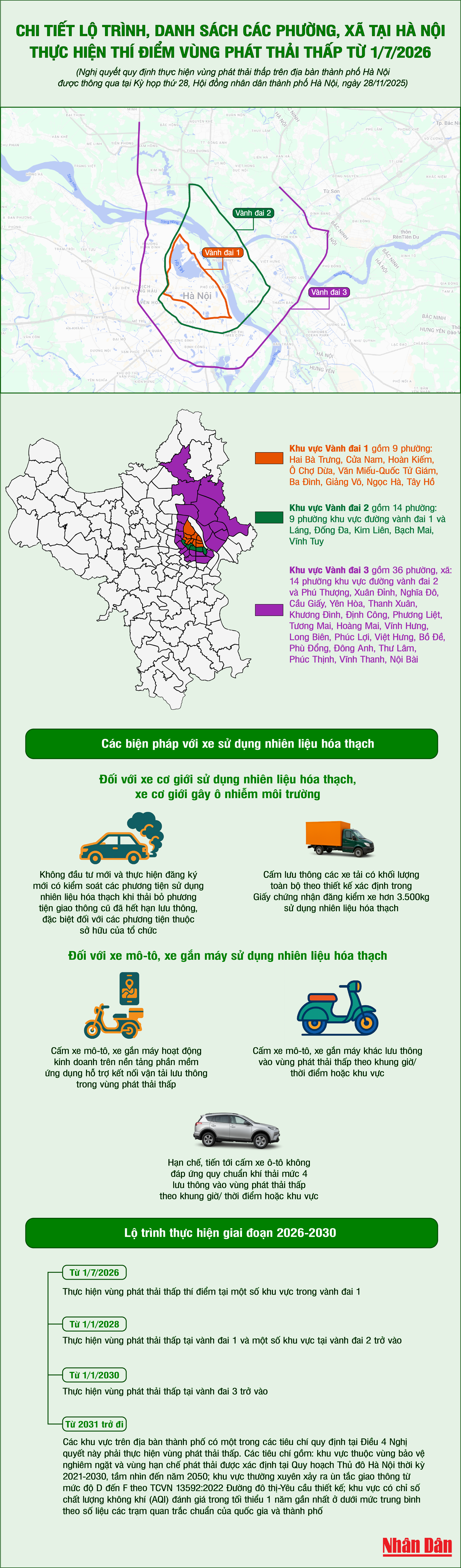 Chi tiết lộ trình, danh sách các phường, xã tại Hà Nội thực hiện thí điểm vùng phát thải thấp từ 1/7/2026