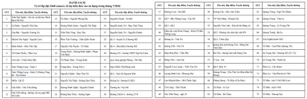 Từ những hiệu quả đã đạt được, Công an TP Hà Nội tiếp tục triển khai các dự án hệ thống camera AI phục vụ công tác giám sát, phát hiện và xử lý vi phạm với 2.460 camera dự kiến trong tháng 7/2026. Vị trí lắp đặt dự kiến như sau: