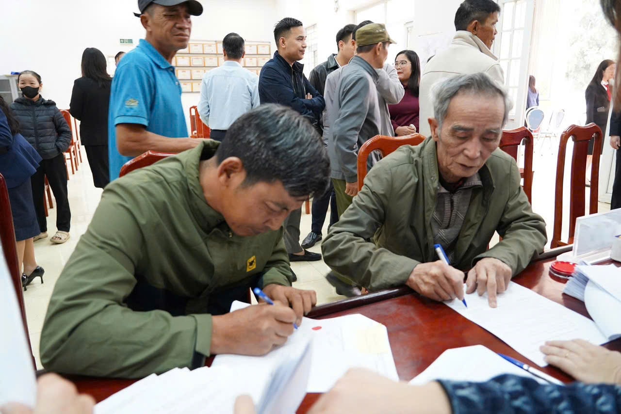 Người dân ký nhận tiền bồi thường. Ảnh: Hoàng Sơn