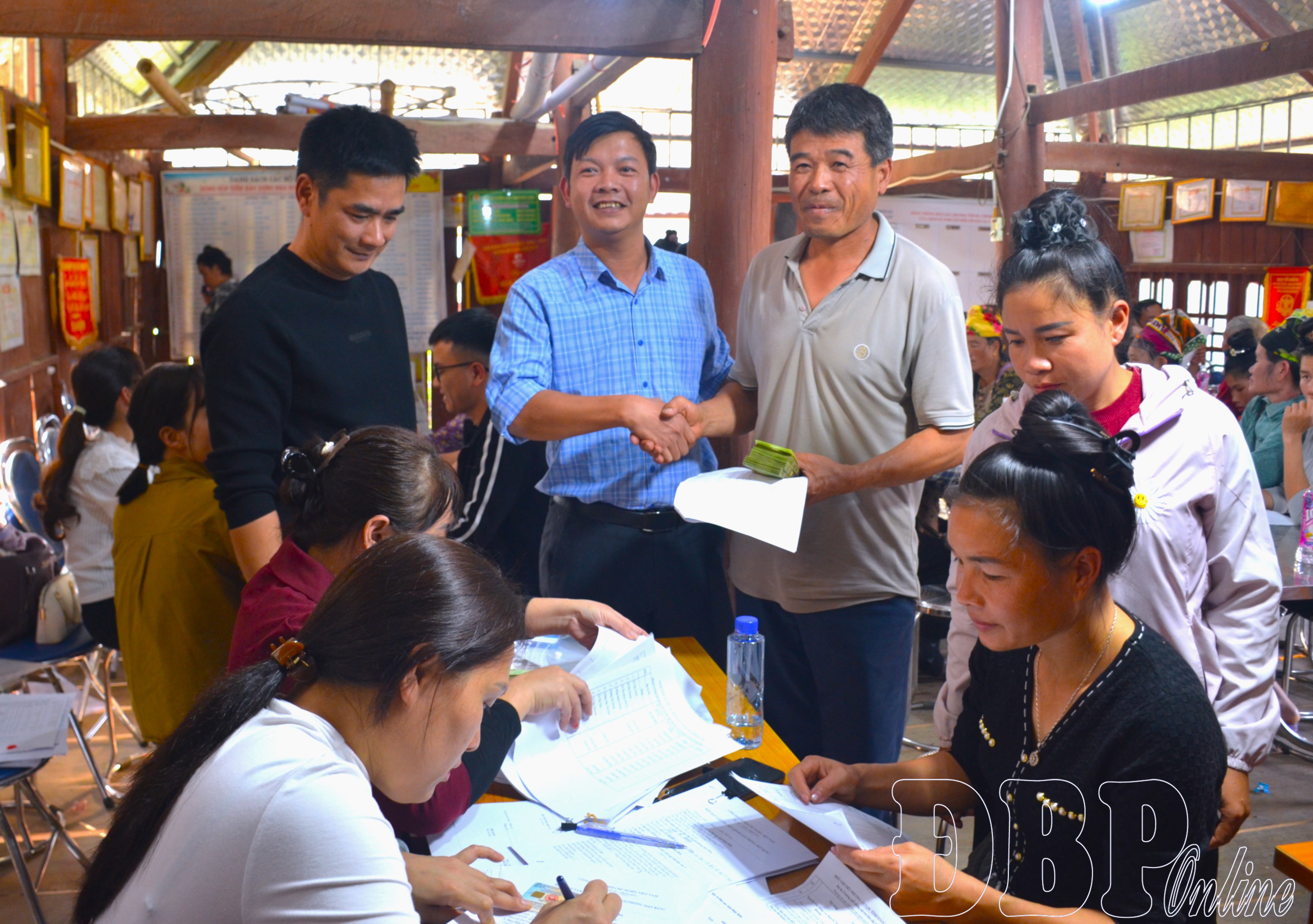 Người dân xã Sam Mứn nhận tiền chi trả giải phóng mặt bằng Dự án đầu tư xây dựng Trường phổ thông nội trú liên cấp Tiểu học và THCS xã Sam Mứn.