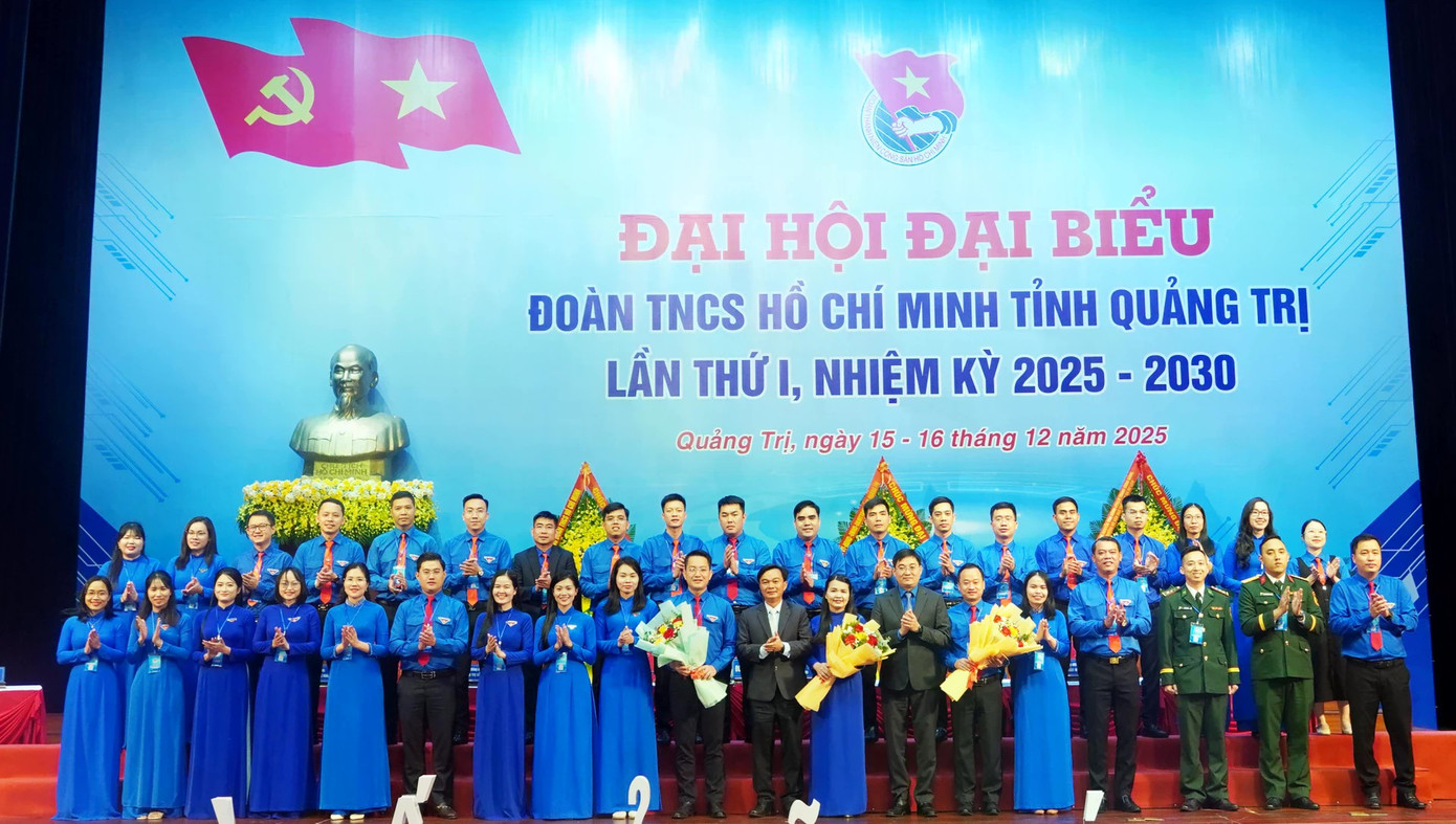 Lãnh đạo tỉnh Quảng Trị và Trung ương Đoàn tặng hoa chúc mừng Ban chấp hành Tỉnh Đoàn Quảng Trị nhiệm kỳ 2025-2030.